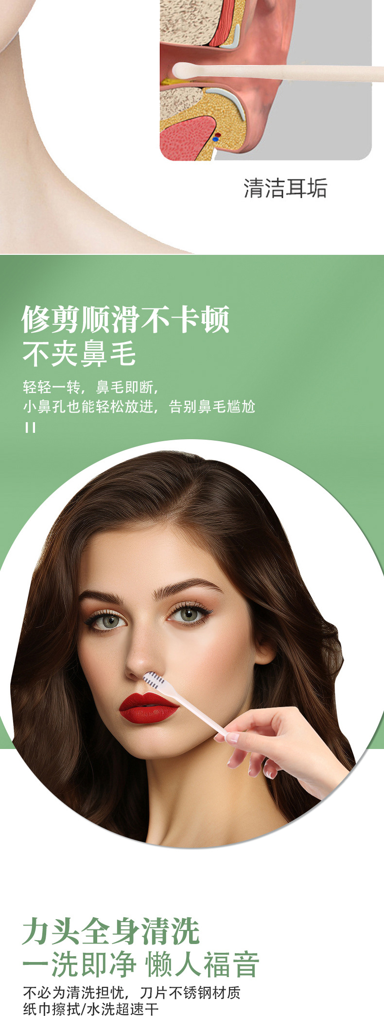 メーカー既製品 両面双頭鼻毛バリカン 手動洗える鼻毛トリミング 双頭耳かき兼用セット