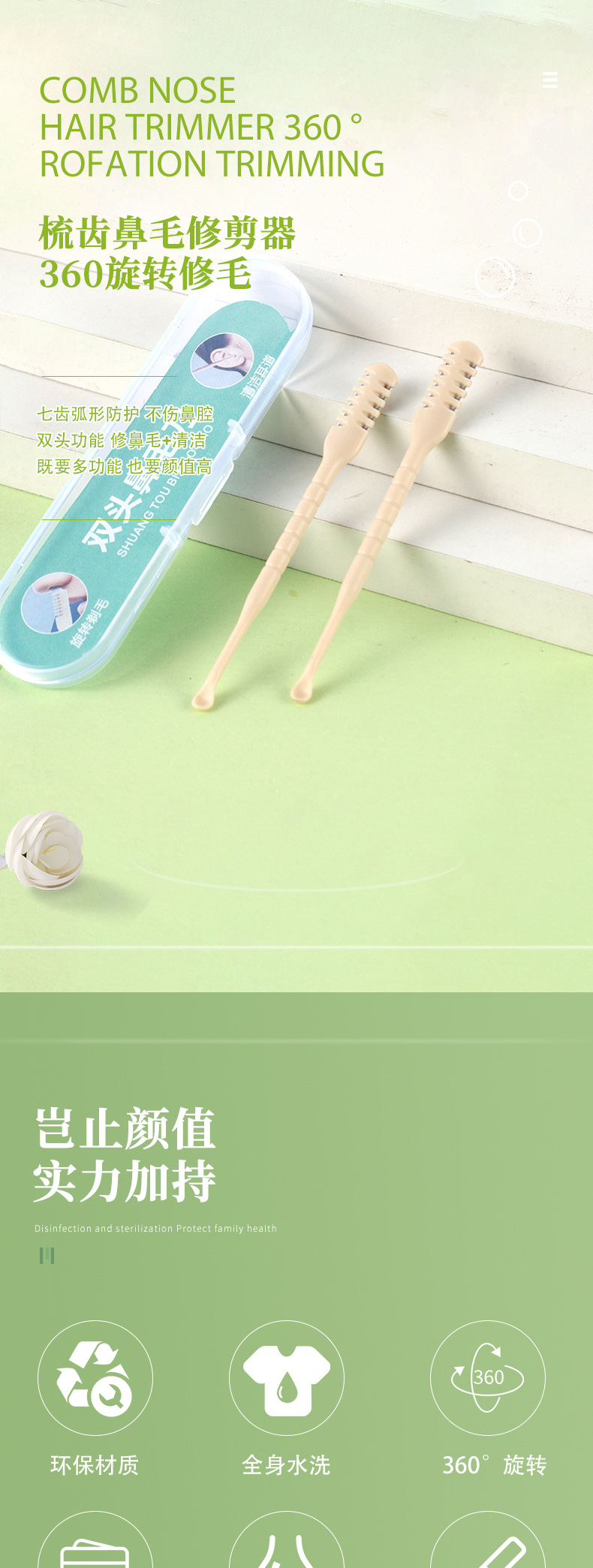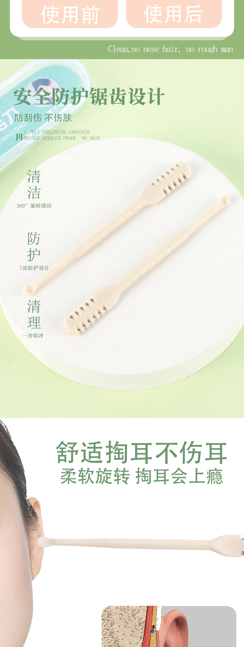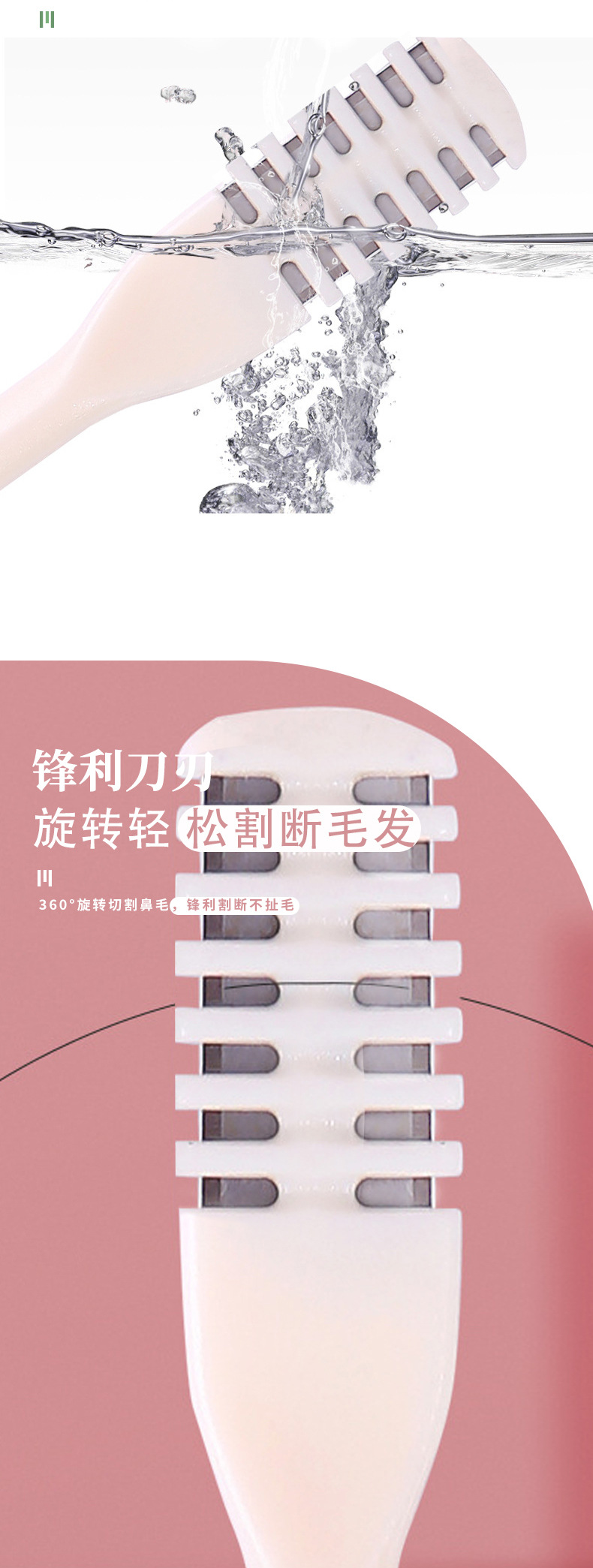 360度旋转式梳齿鼻毛修剪器男女手动清理鼻孔毛剃刀防刮伤鼻毛刀