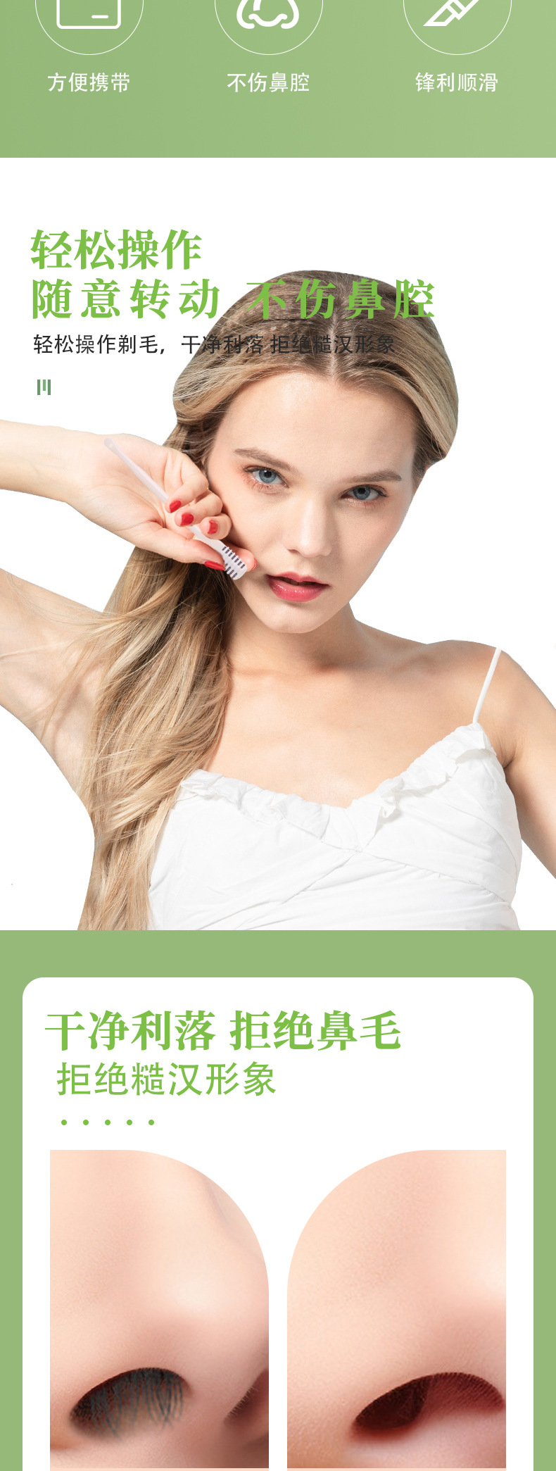 鼻毛シェーバー、鼻毛ナイフ、両頭設計、ポータブル手動クリーニング美容ツール、メーカー直販