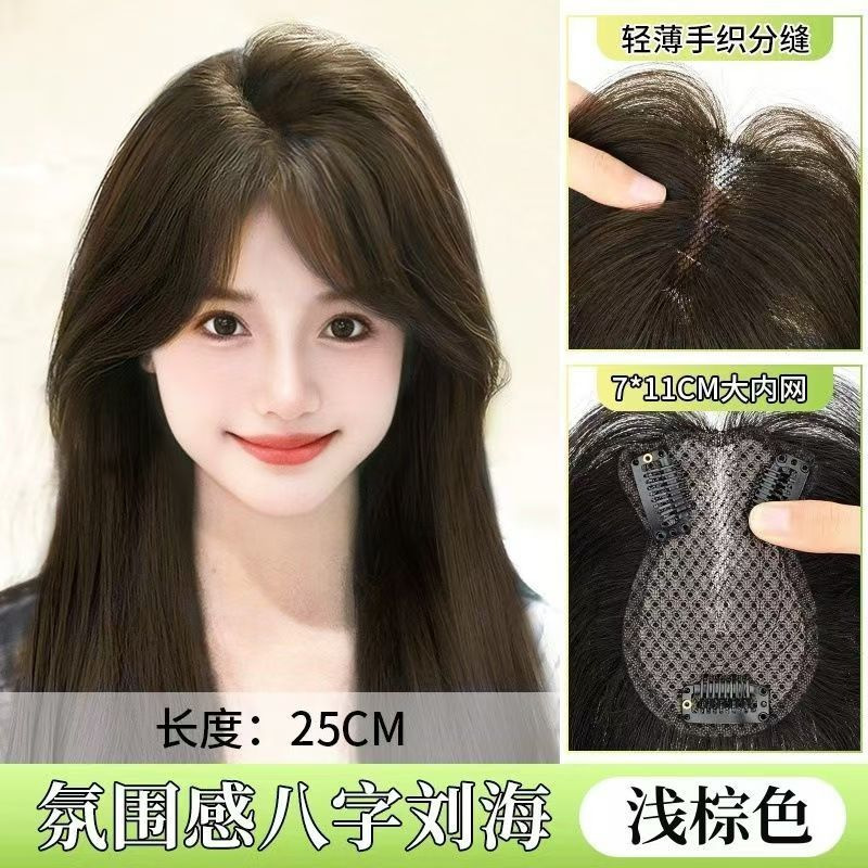 全手织高颅顶假刘海女云轻纱假发女片前额假发头顶补发假空气刘海