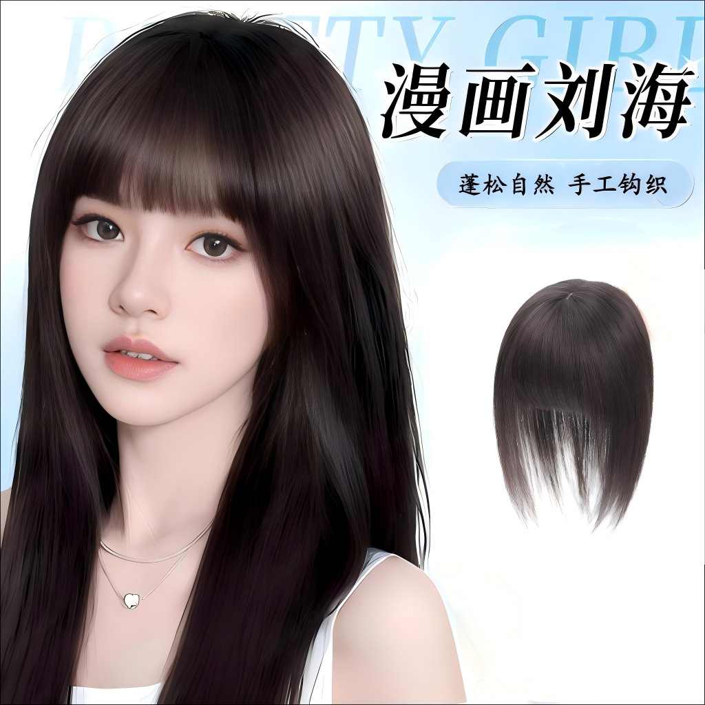 假发漫画刘海假发片女头顶补发片自然遮盖白发仿真发齐刘海补发块