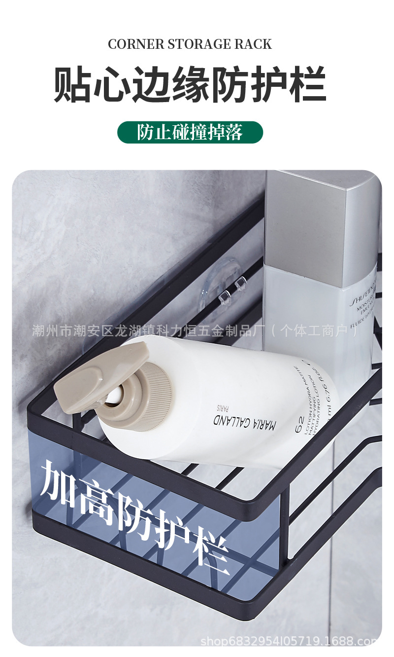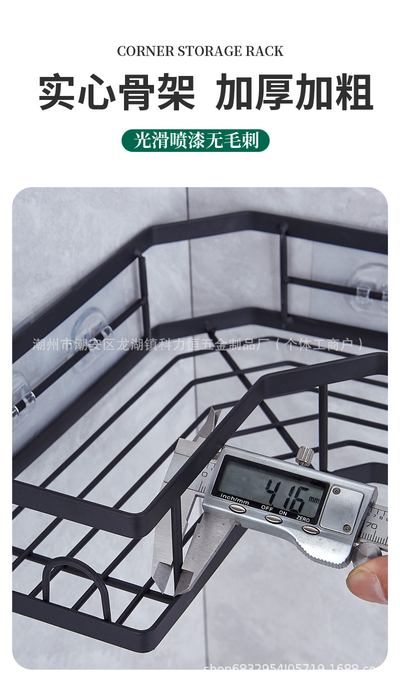 跨境免釘浴室三角置物架厕所卫生间转角架铁艺壁挂式淋浴间收纳架