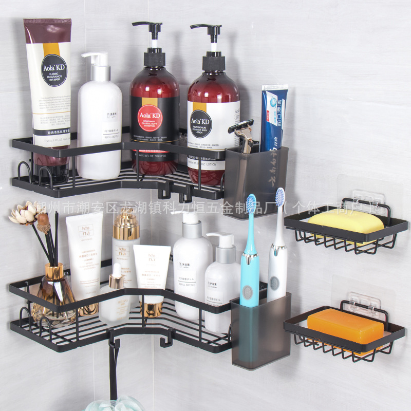 クロスボーダーバスルーム収納ラックパンチフリーアイアン三角ラックバスルームトイレキッチン壁掛け収納ラック壁