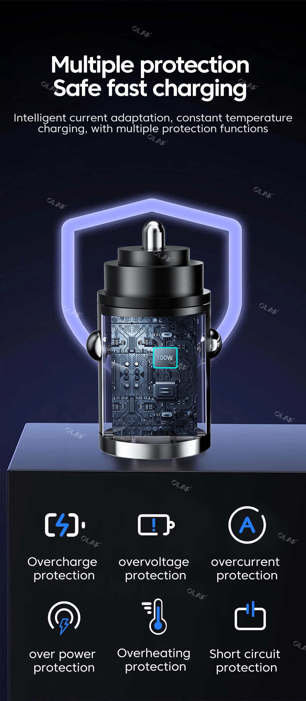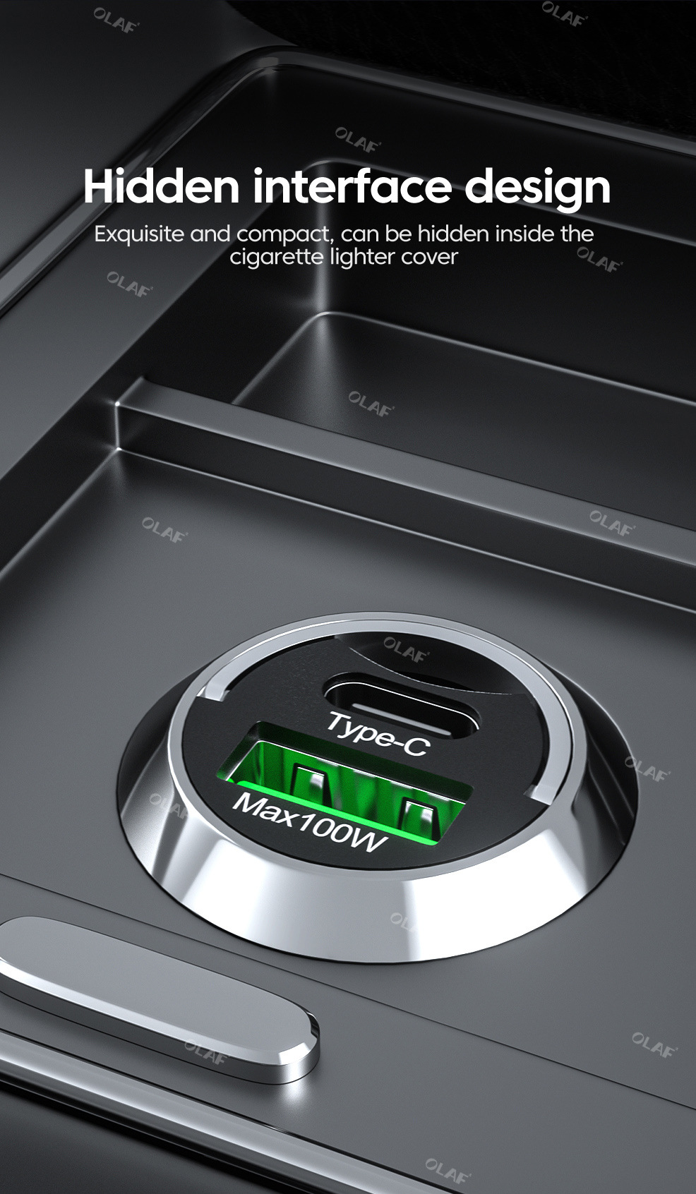100W ミニプルタグ車の充電器 USB A+TYPE-C デュアルポート車の充電器 Samsung Huawei Honor に適しています
