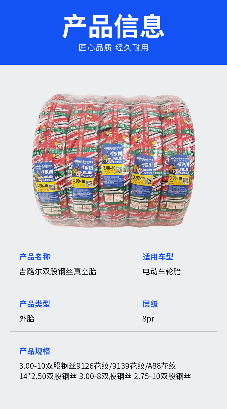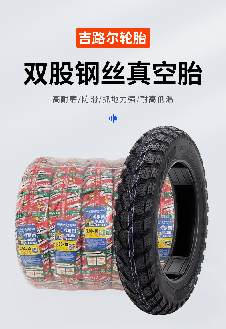 Jiluolangtu ダブルストランド鋼線 3.00-10 真空タイヤ 8 層厚みのある耐パンク性、滑り止め、耐摩耗性の本物の卸売