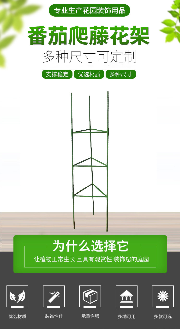 庭の装飾牽引つるフラワーラックグリーングラスファイバースタンドフラワーポストトマト支柱メーカー直接供給
