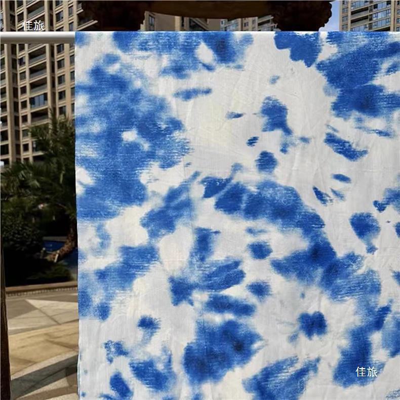 幼稚園の環創藍染の布地はテーマの薄いガーゼの民宿のガーゼのカーテンを刺して背景の布を飾ります。