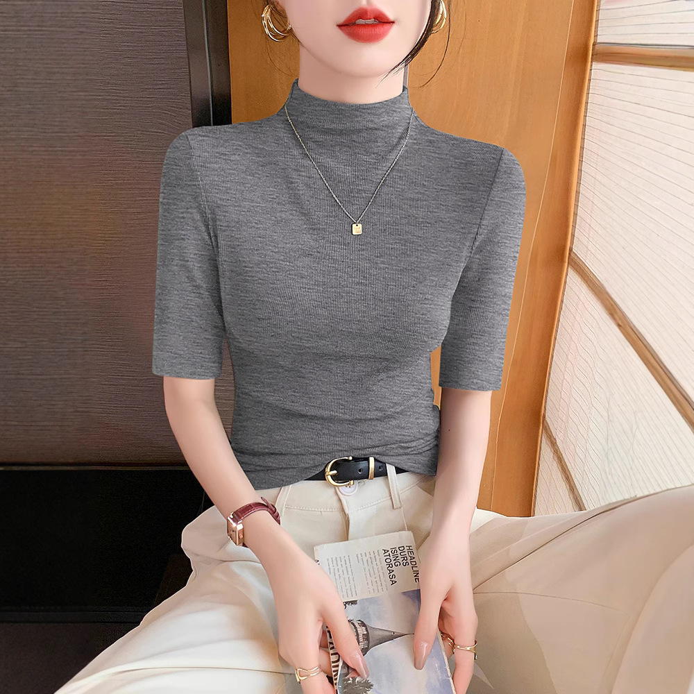 モーダル半袖 Tシャツレディースハーフタートルネックボトリングシャツ 2025 夏の新ファッション多用途黒スリムトップ