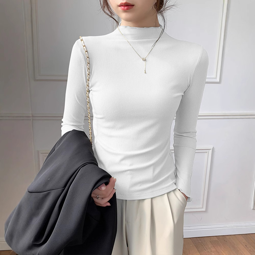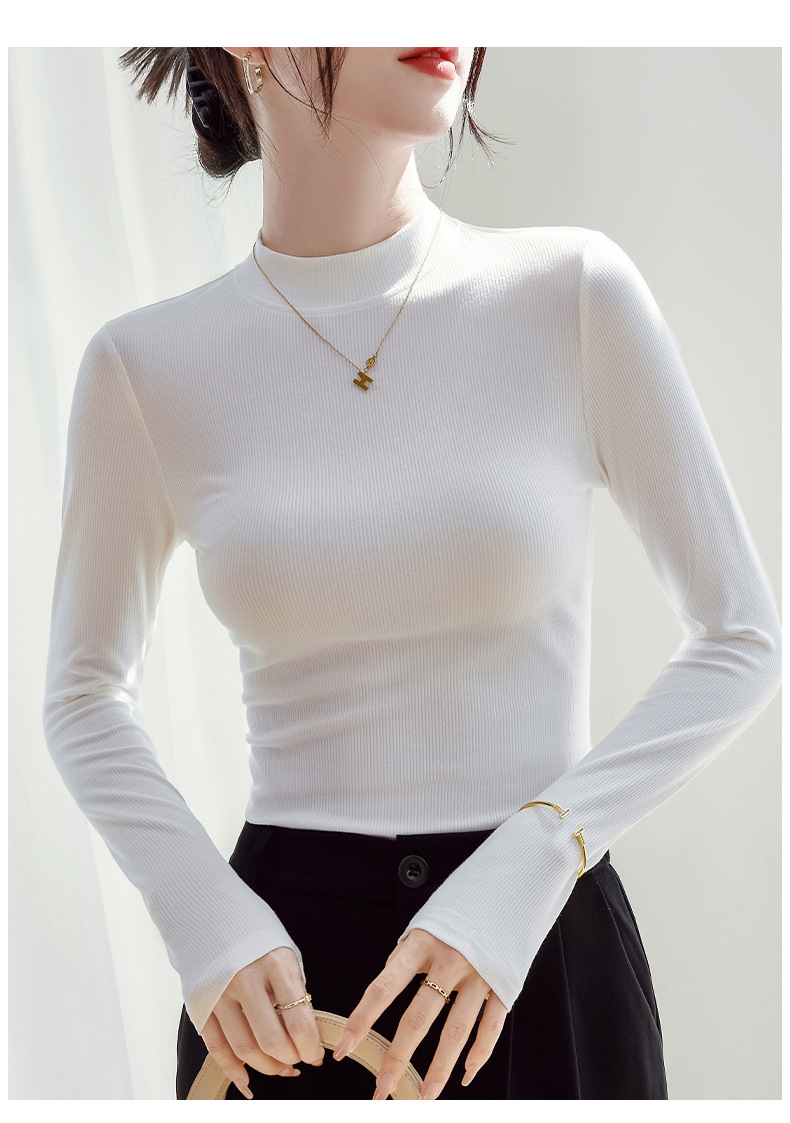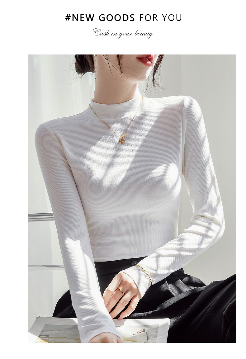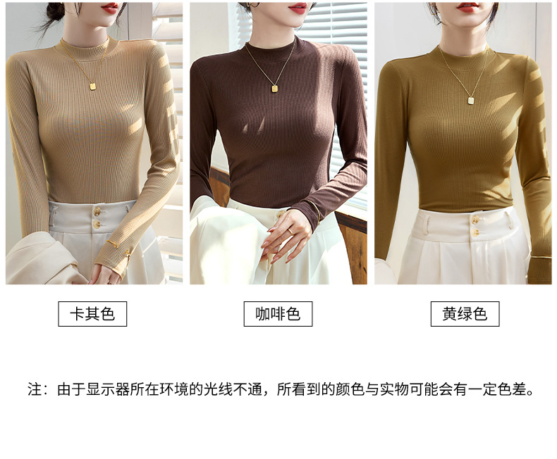 モーダル高弾半高襟シャツ女性修身長袖tシャツの中に2025年と秋の新型上着を着ています。