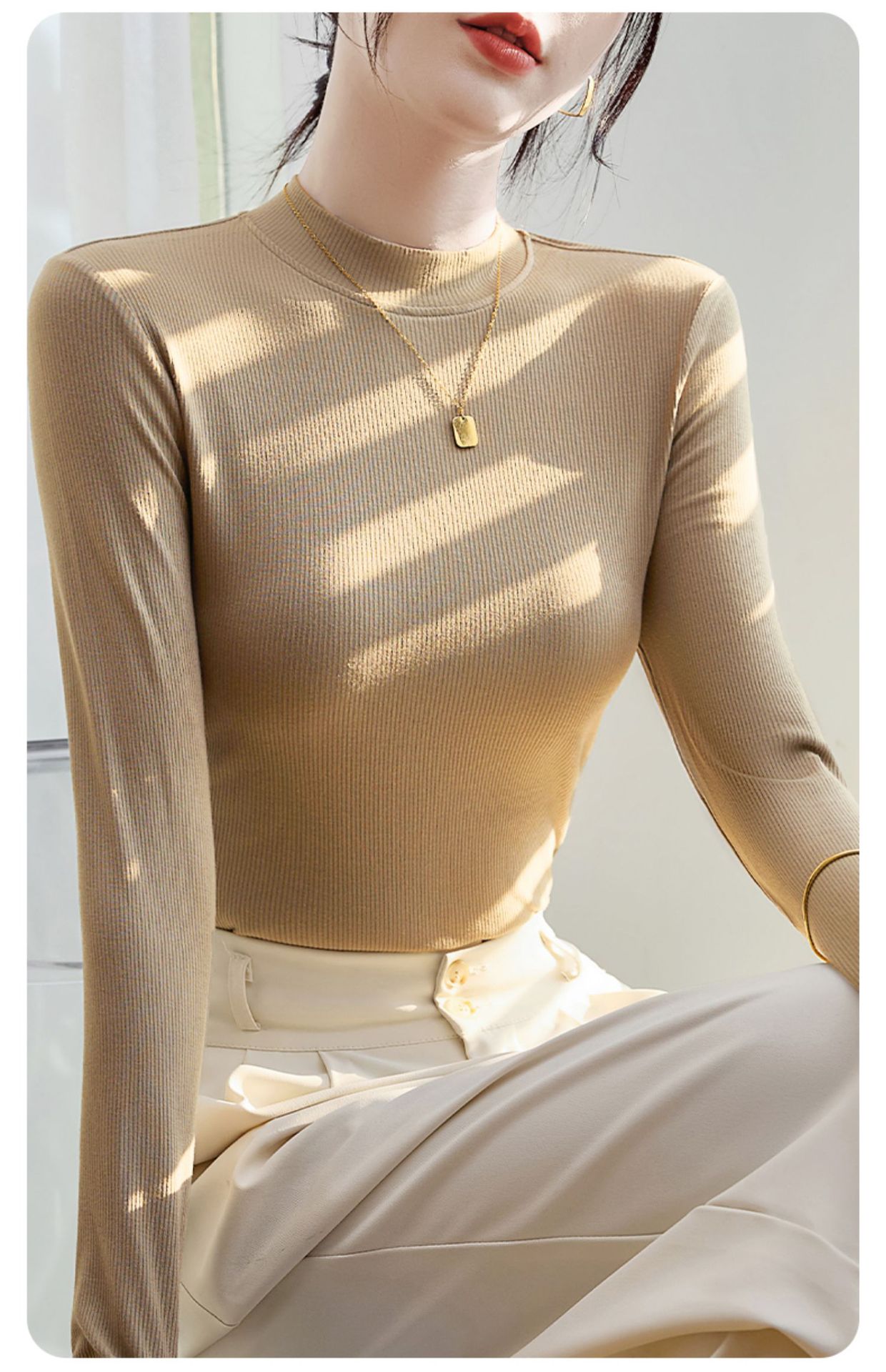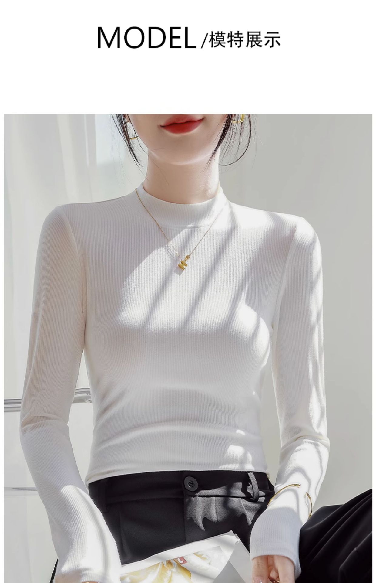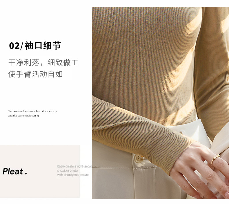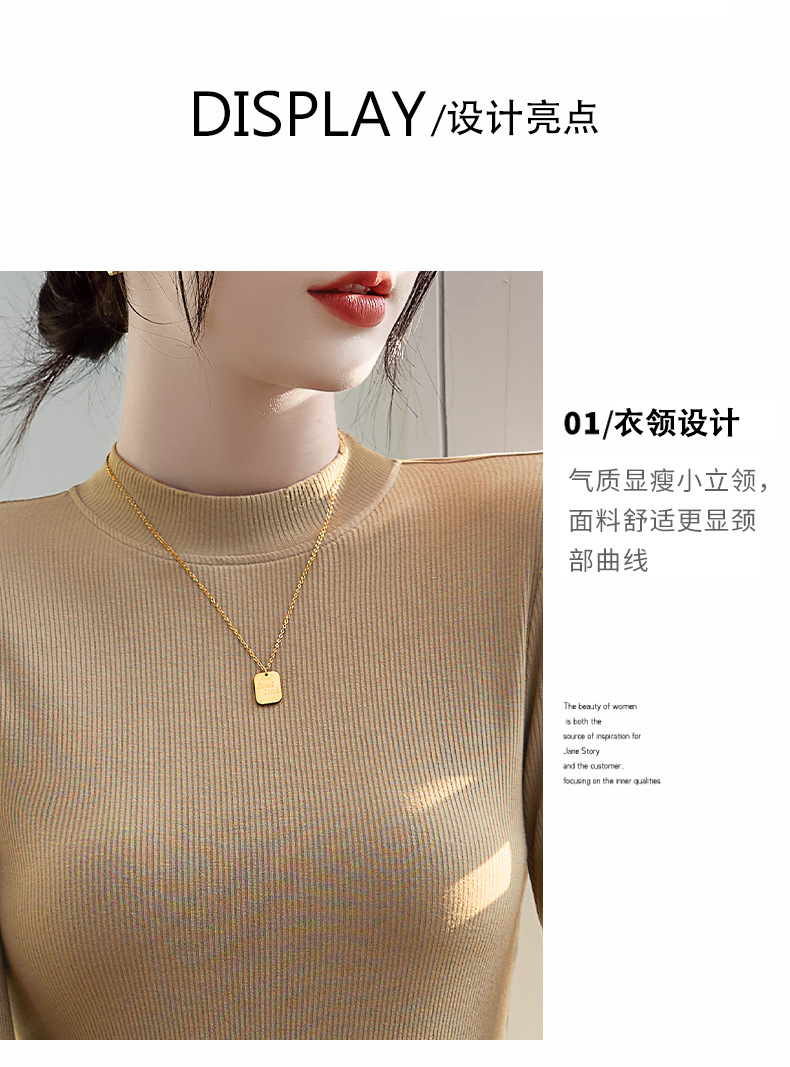 モーダル高弾半高襟シャツ女性修身長袖tシャツの中に2025年と秋の新型上着を着ています。
