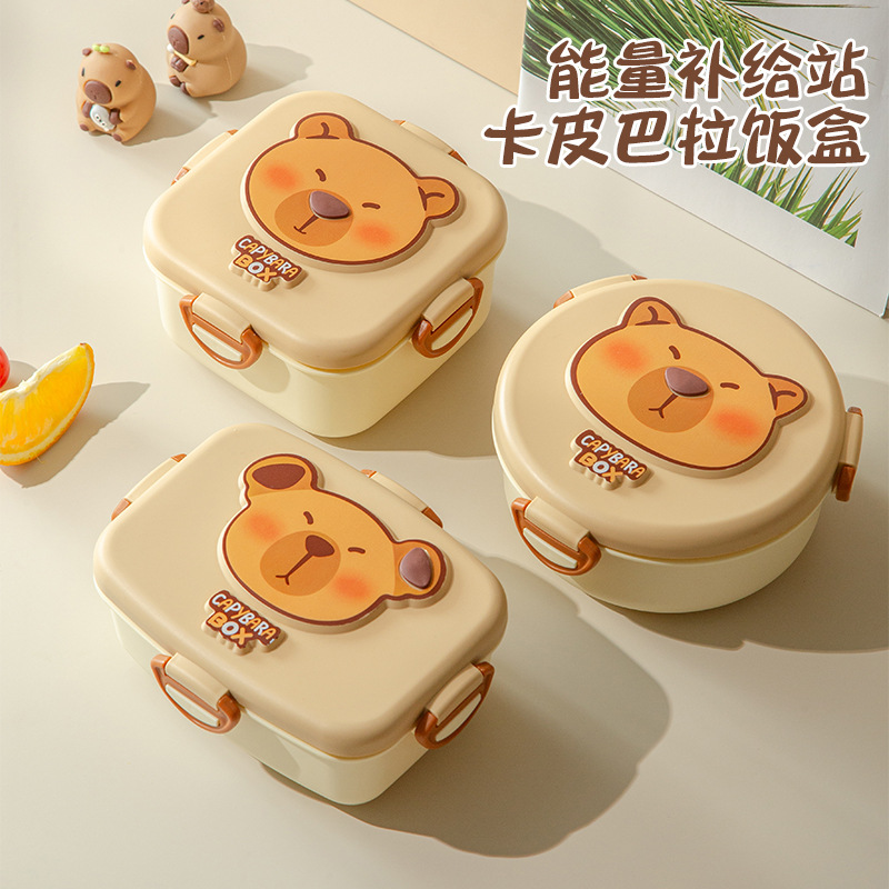 卡皮巴拉系列塑料饭盒便携便当盒带勺学生可微波炉加热午餐盒饭盒
