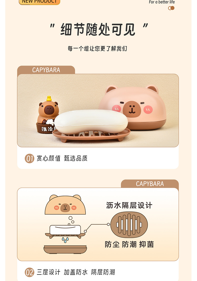 Kapibala ソープボックス クリエイティブ排水蓋付きポータブル学生寮のバスルームホームバスルームソープボックス