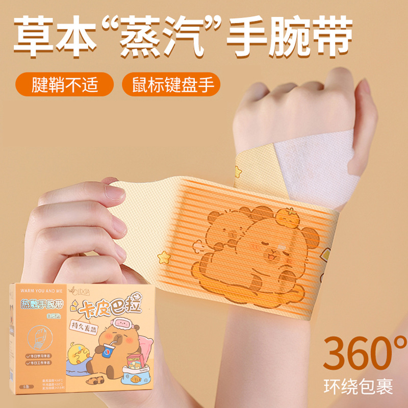 新款5片装卡皮巴拉热敷手腕带360°环绕包裹自发热暖手宝女暖宝宝