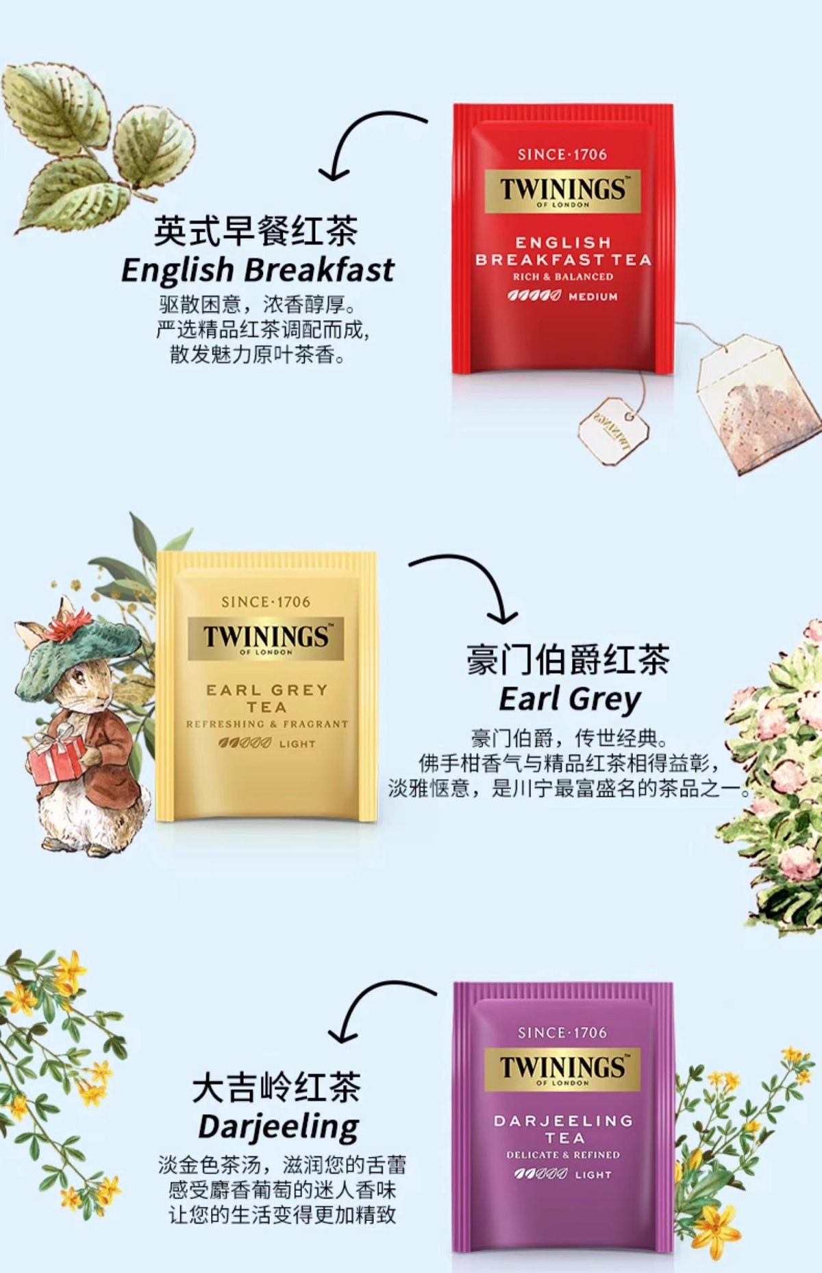 Chuan.Ningbide Rabbit 共同ブランド カラフルなティーパーティー ティーバッグ ギフトボックス お土産 アールグレイ紅茶
