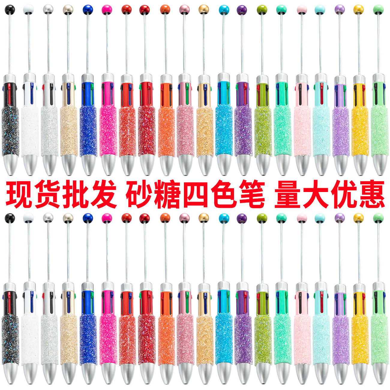 新しいdiy四色の砂糖の数珠の筆のアイデアの多色のプラスチックのボールペンの学生の四合一は手のペンを押します。