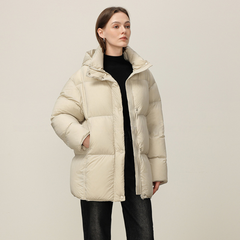 2025年冬新作 厚手ロングダウンコットンジャケット カップル男女兼用 スタンドカラー フード付き 暖かい ゆったり 外出着