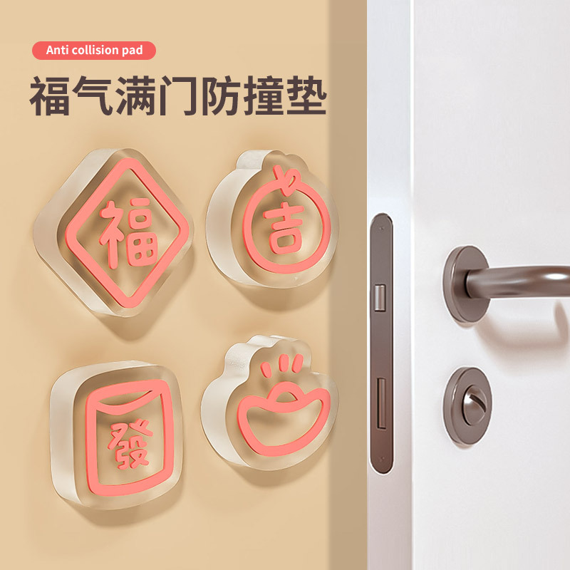 新年のお守り衝突防止パッド 厚手PVCソフトゲル ドアステッカー 衝突防止 冷蔵庫ドア後部ハンドル 壁ステッカー クッションパッド