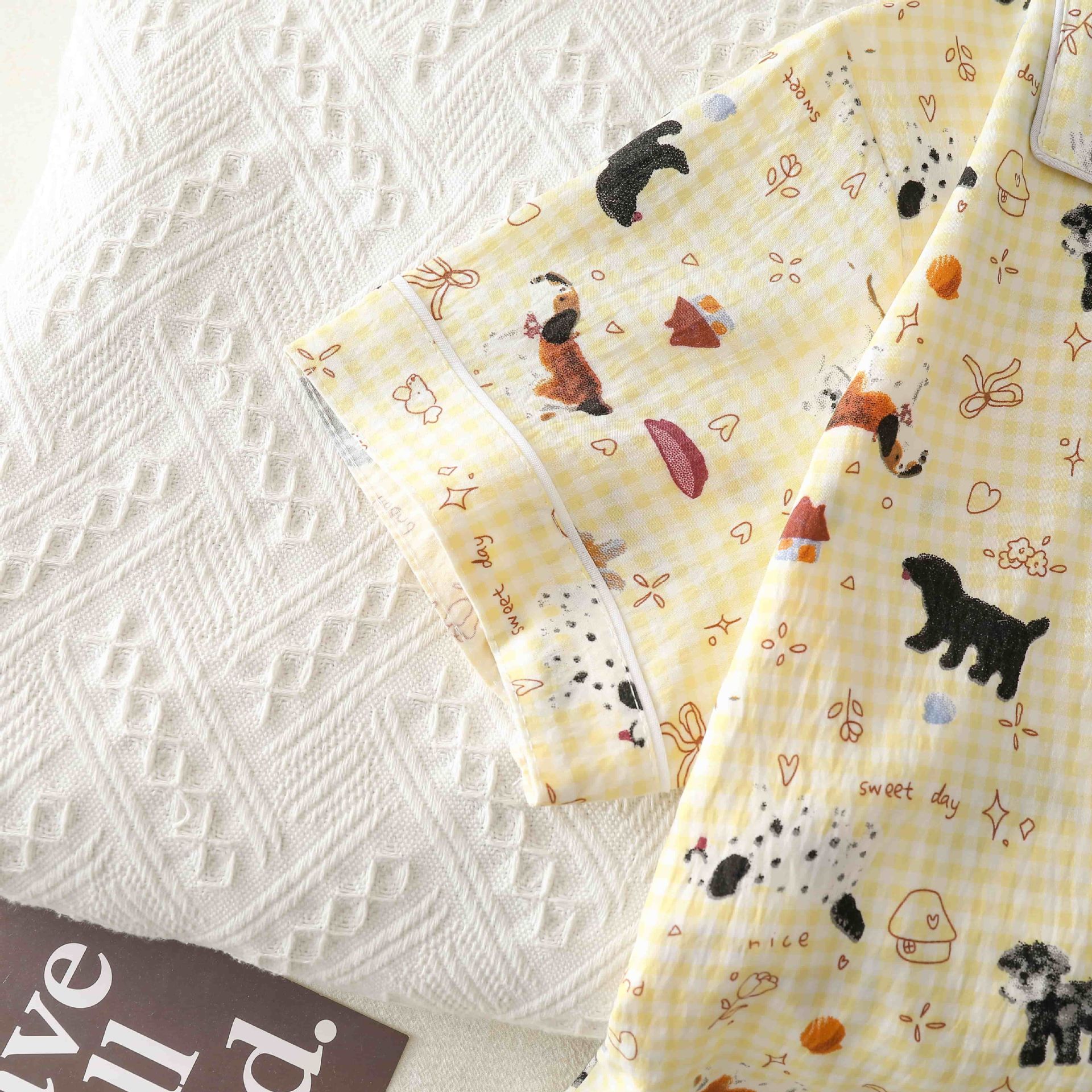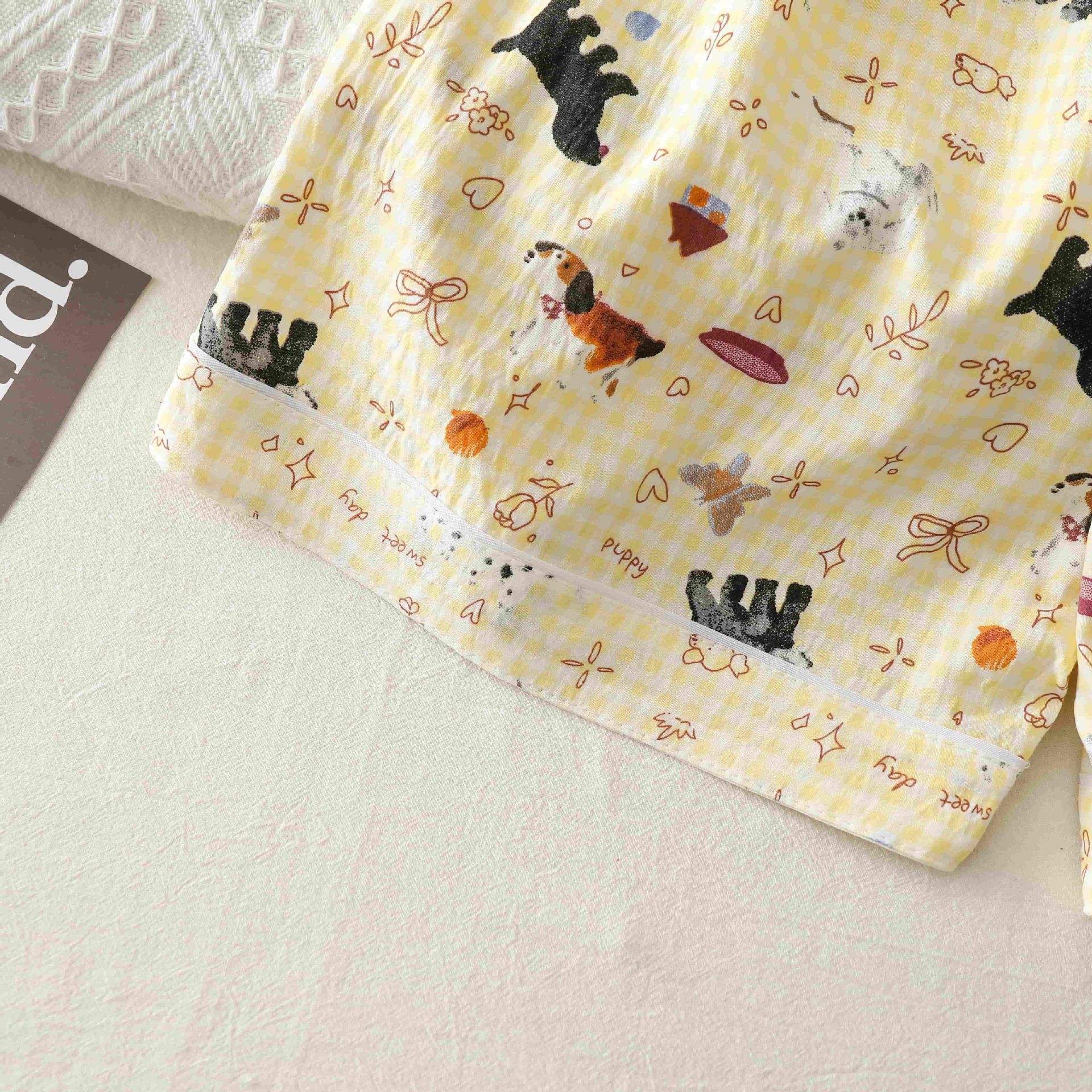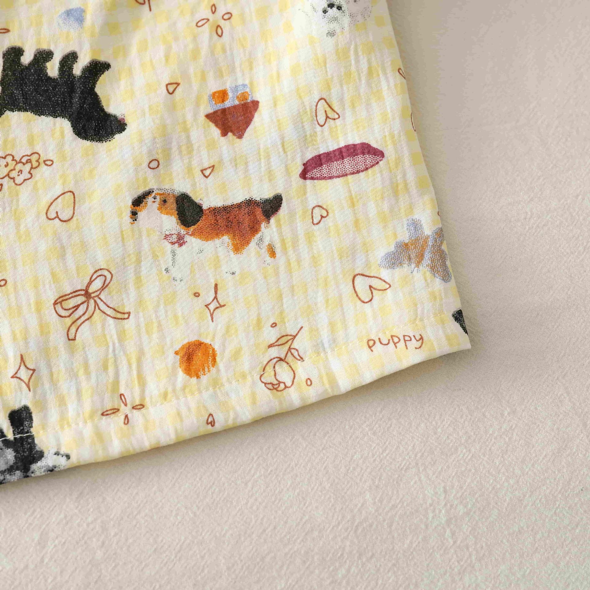 クロスボーダー卸売夏の新しいクラウドコットンカーディガンラペル甘いパジャマ女性の半袖ショーツホーム服かわいい犬