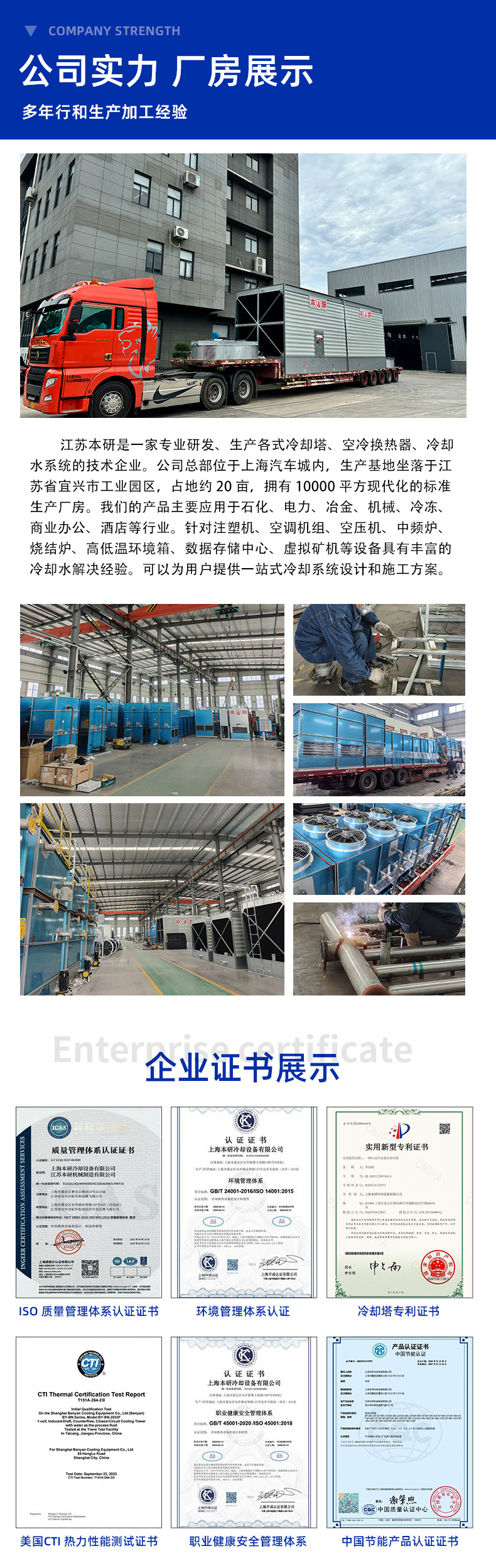 密閉型冷却塔、角型横流マグネシウムアルミニウム亜鉛メッキ鋼、試験槽、高温コーティング機冷却工場