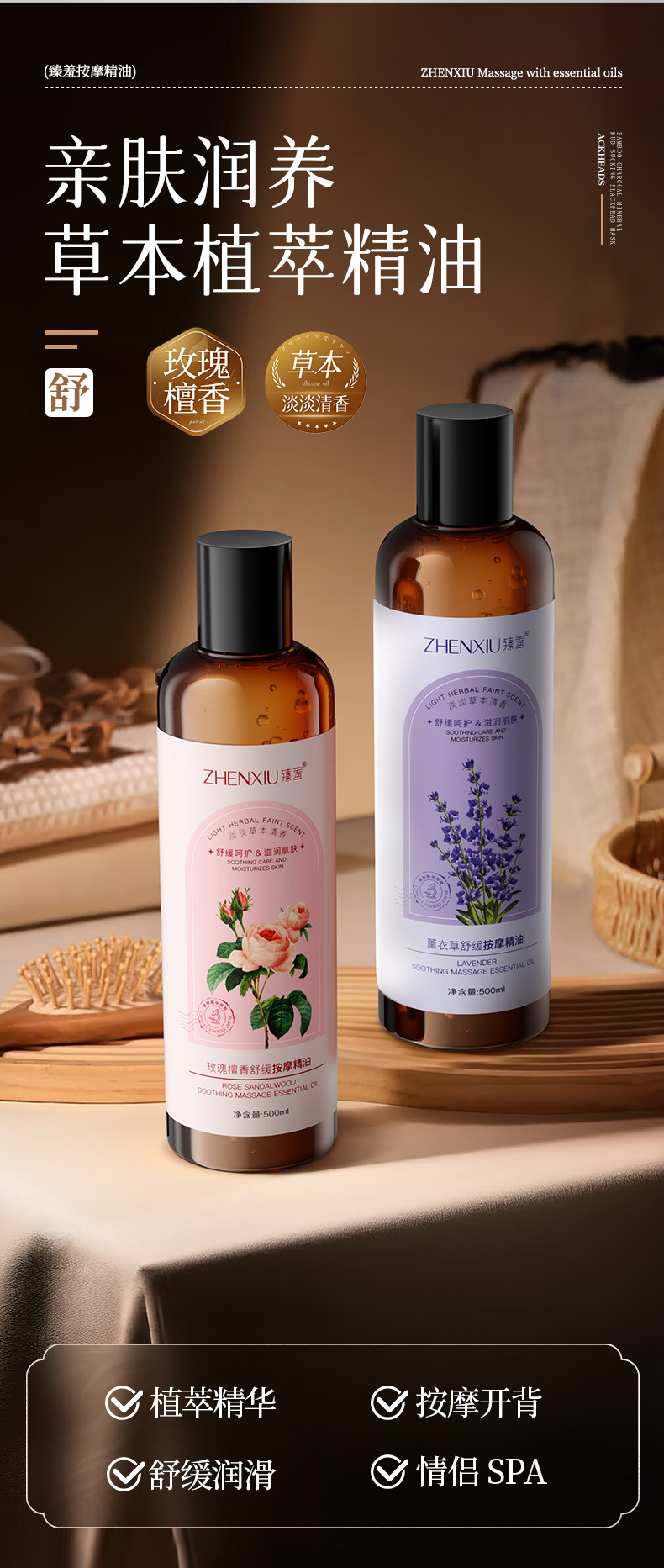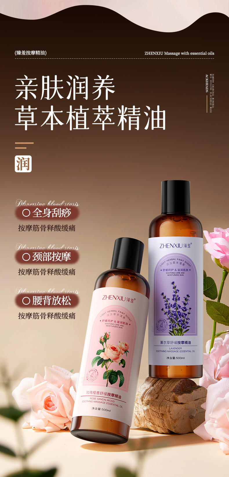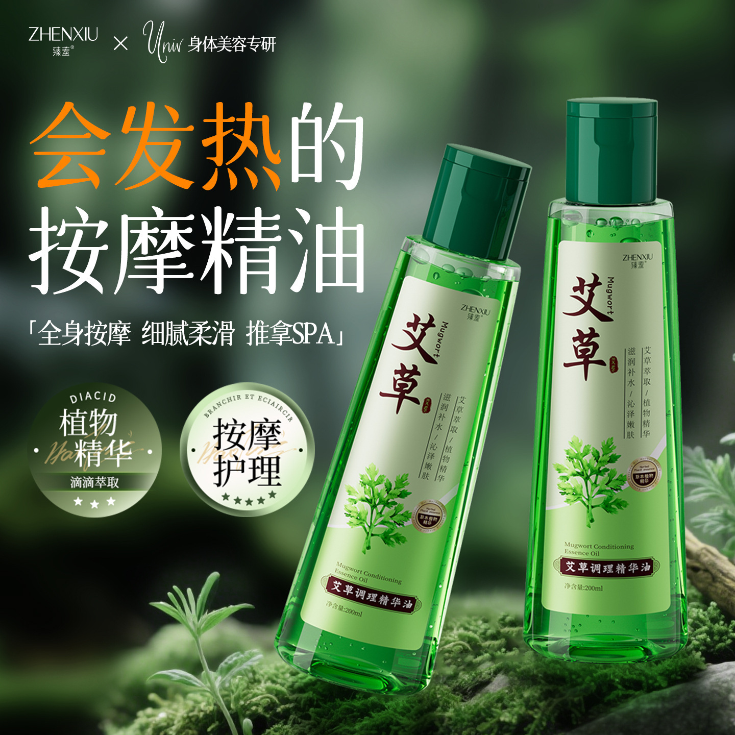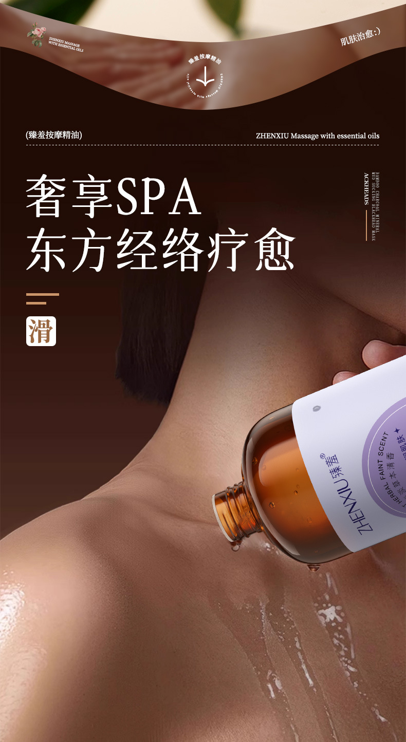 臻羞艾草调理精华油全身通经络发热刮痧推拿推背免洗复方精油批发