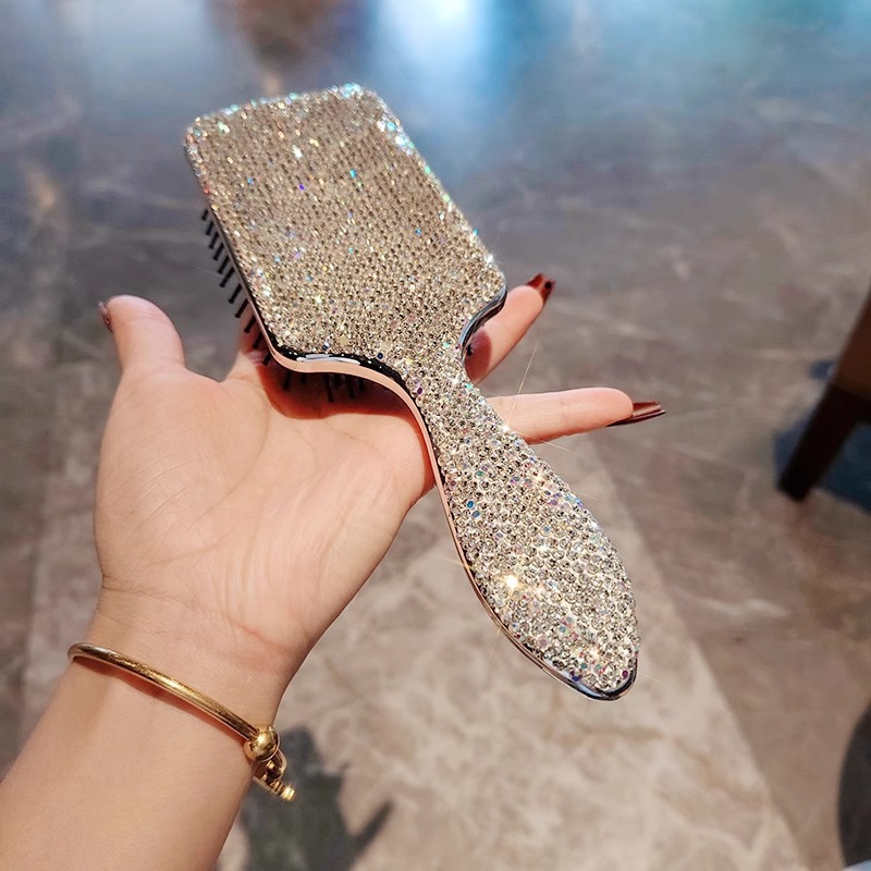 ファッショナブルなフルダイヤモンドの豪華なエアバッグコーム、パーソナライズされたニッチな大型ボードコーム、ふわふわヘアコーム、女性用ホームクロスボーダーホットセール