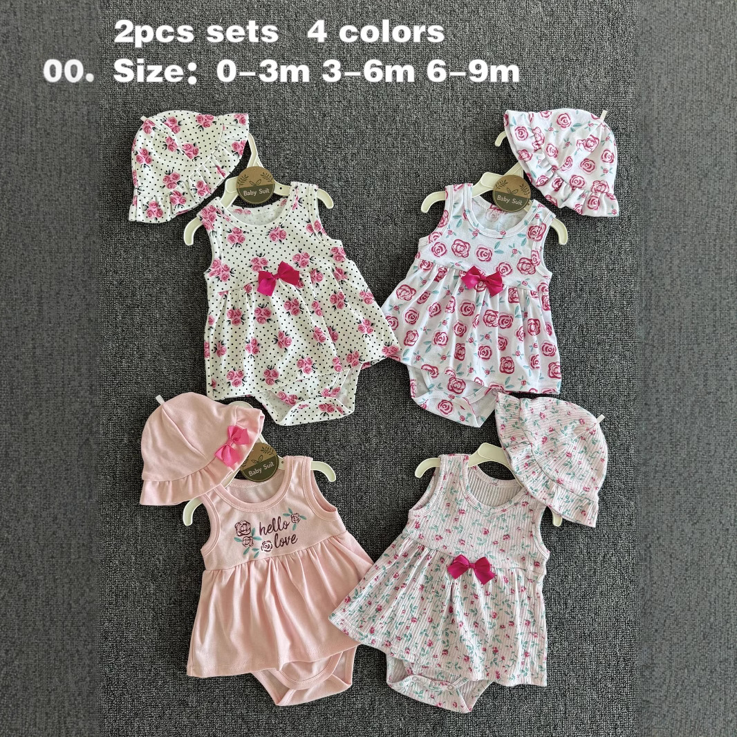 Amazon INS 小さな新鮮な女の子ベビースーツ無地プルオーバーハーネスプリントオーバーオール 2 点セット