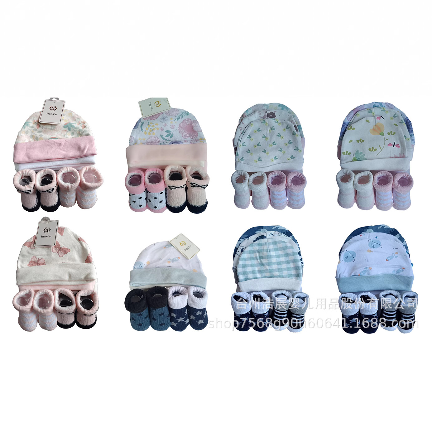 赤ちゃんの帽子の靴下の組み合わせのセットのプリントの刺繍の金の赤ちゃんの帽子の靴下は快適でかわいいです。