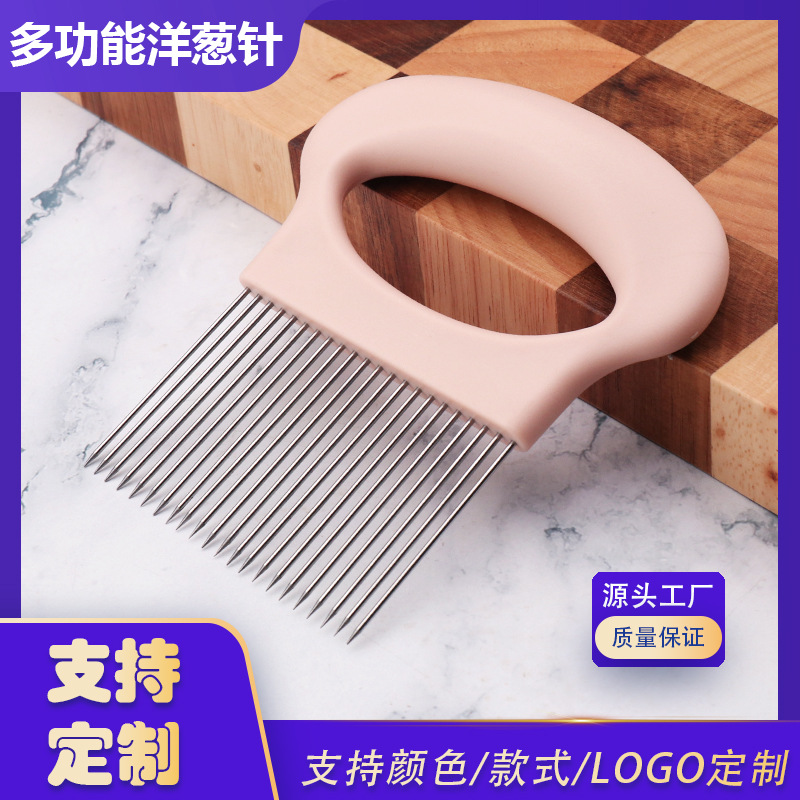 ステンレス製玉ねぎニードルスライサー、ミートニードル、玉ねぎカッター、野菜カッター、トマト固定具、レモンスライサー