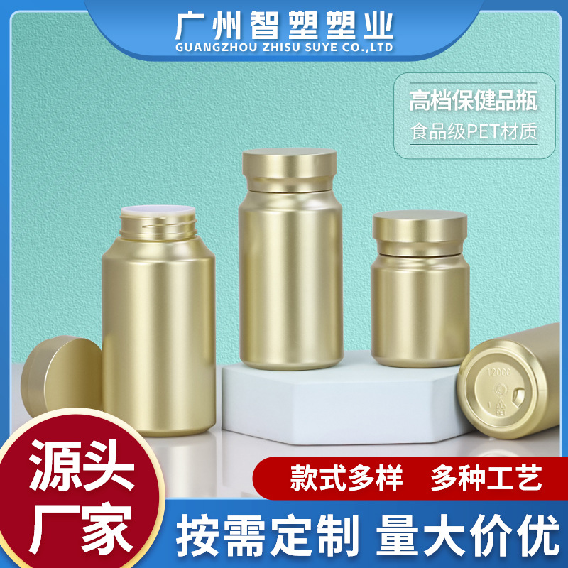 现货多种规格pet保健品钙片胶囊压片糖果VC分装瓶批发金色塑料瓶