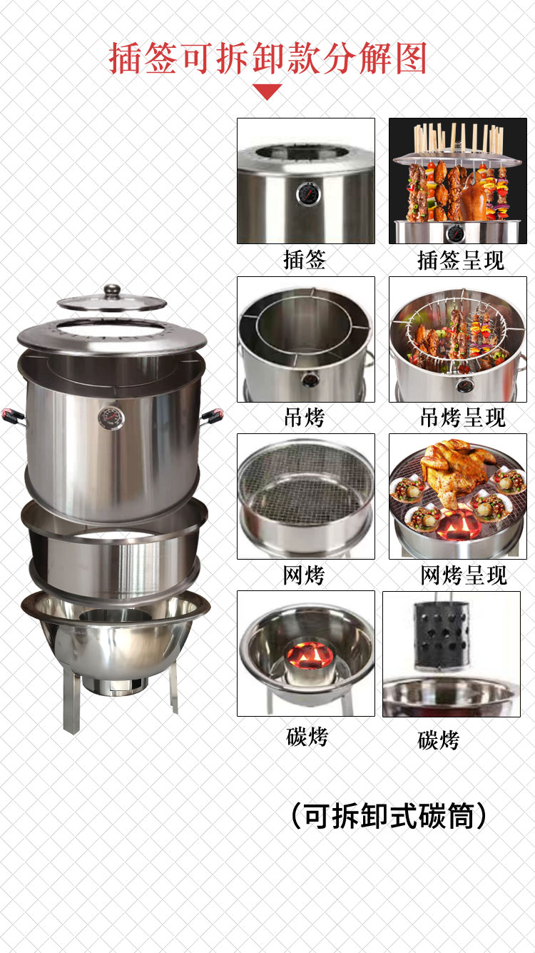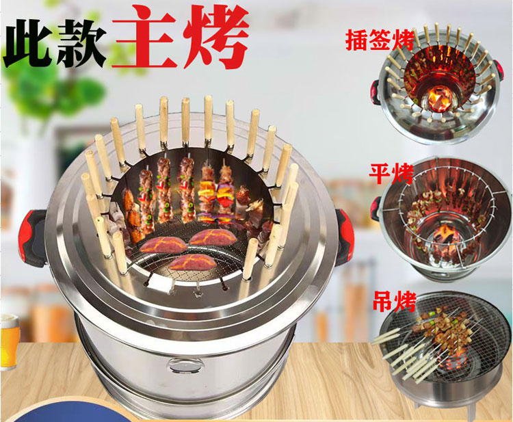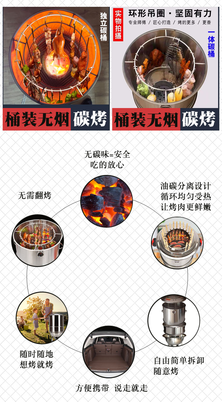 吊り下げ式バーベキューグリル家庭用無煙カーボングリルバーベキューバケツ多機能屋外ラムチョップバーベキューチキンストーブバーベキューグリル