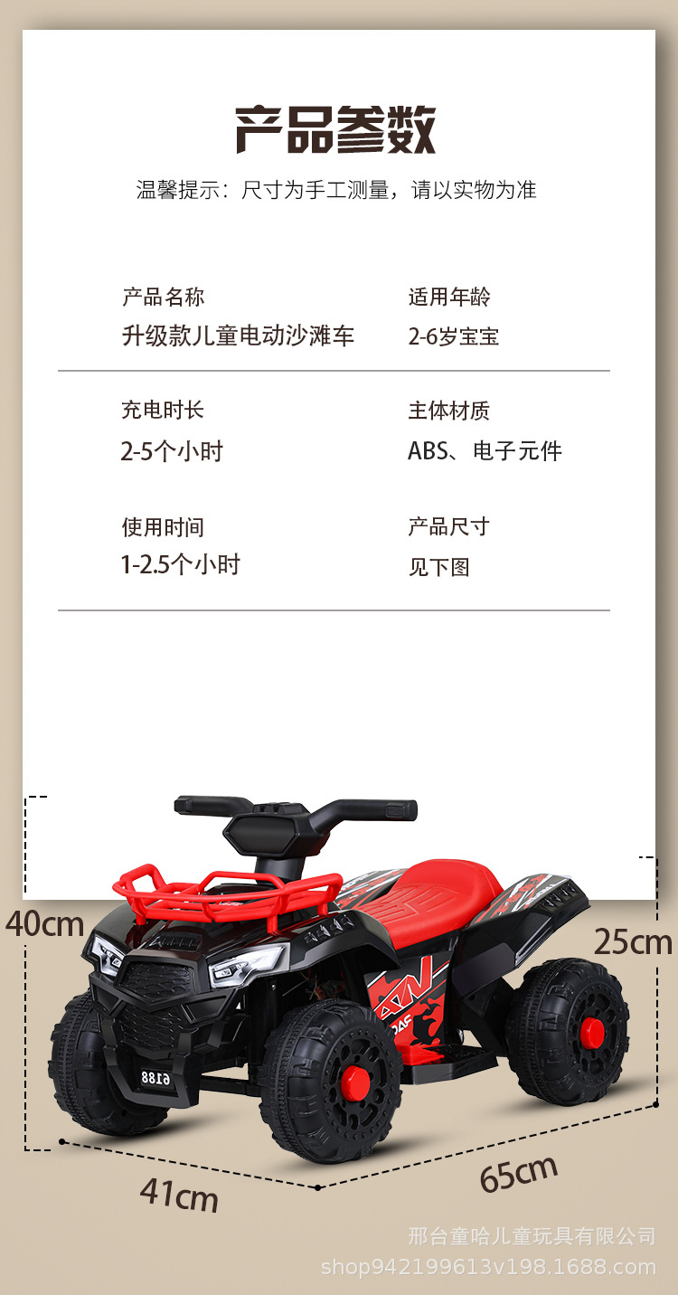 儿童沙滩车电动摩托车玩具1-3-5岁男女孩宝宝四轮越野车