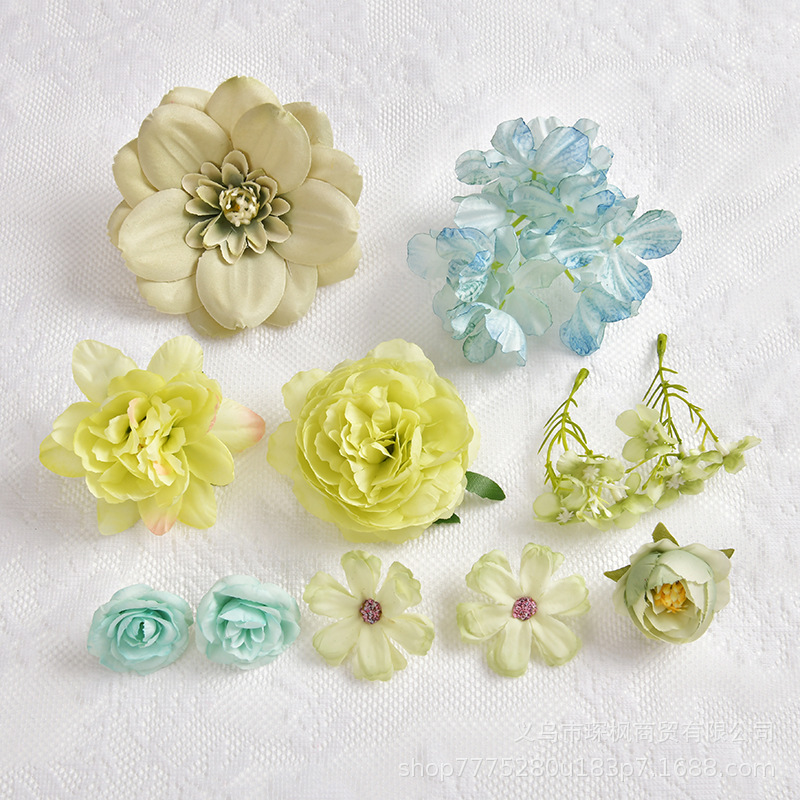 ブルー系シミュレーション花セットバラ花造花絹花古風頭飾りDIYかんざし花痛包装飾