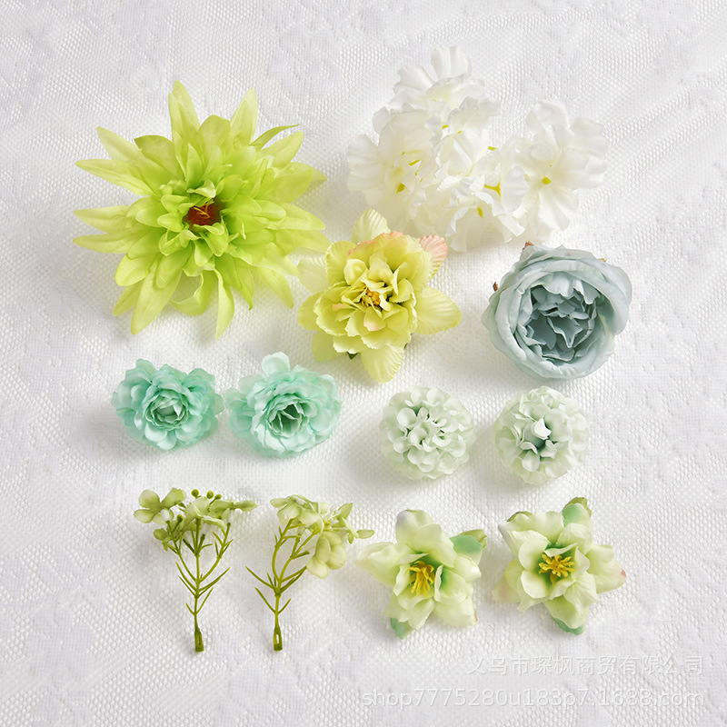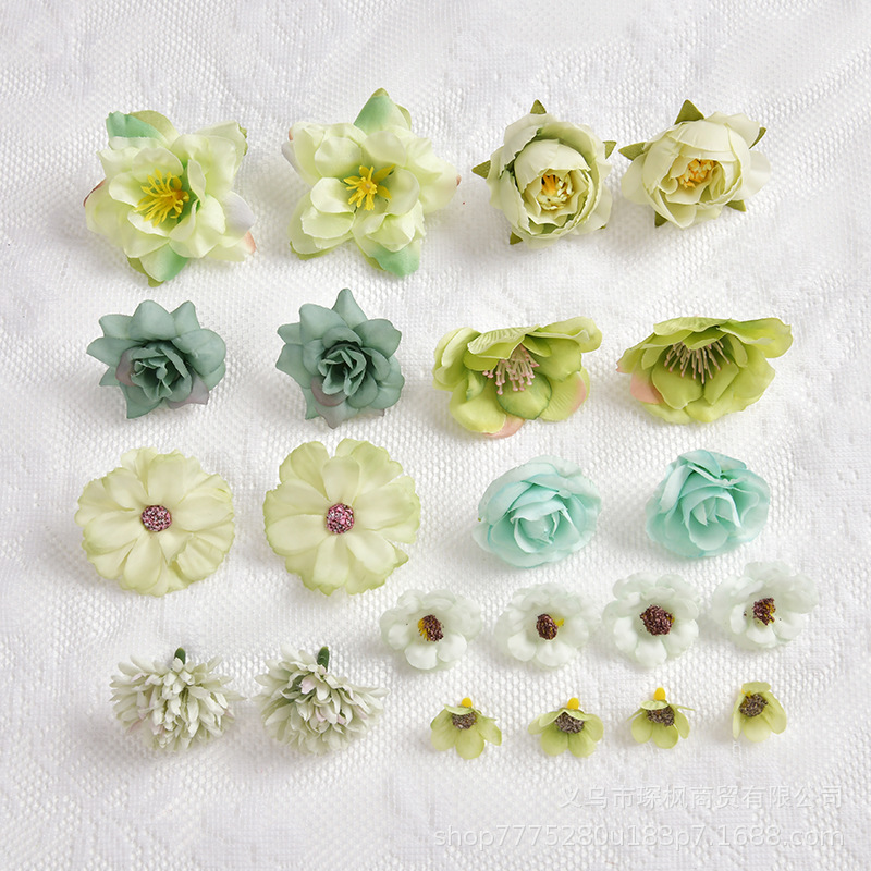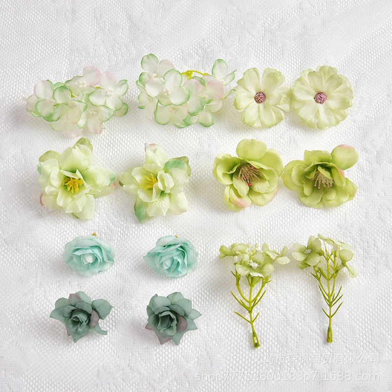 グリーン模擬花セットローズ造花シルクフラワー古代スタイルの頭飾り DIY イブニングフラワーパック装飾