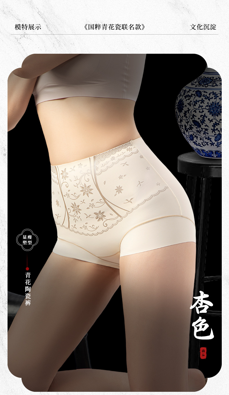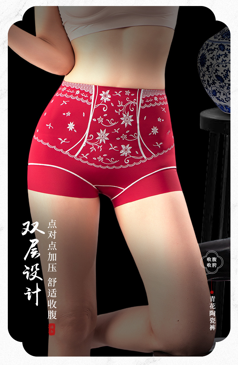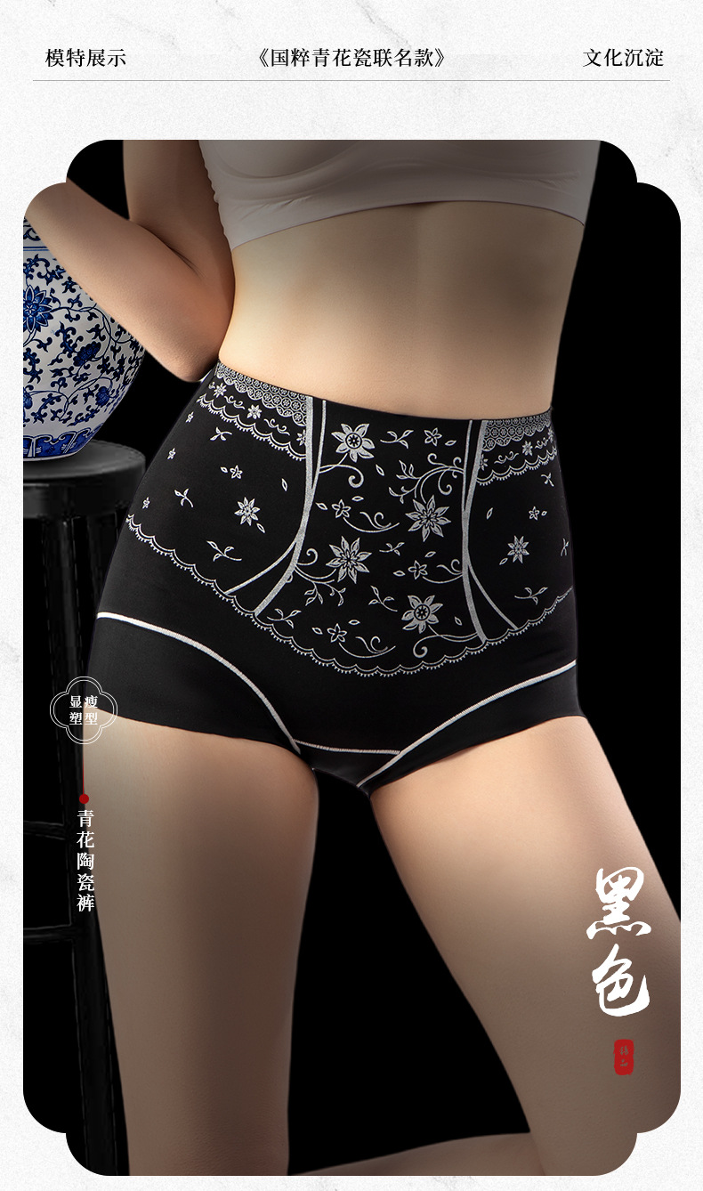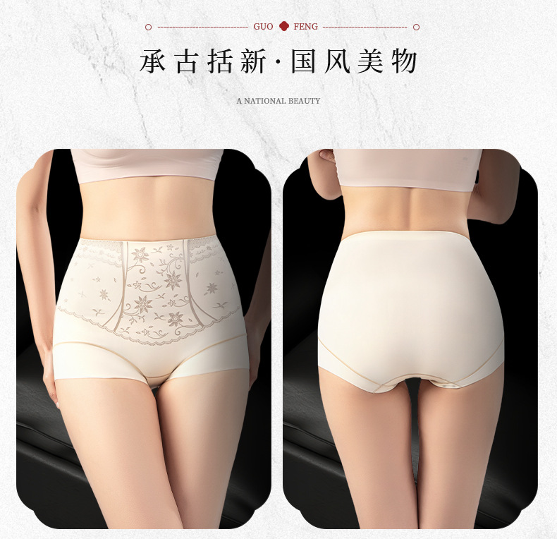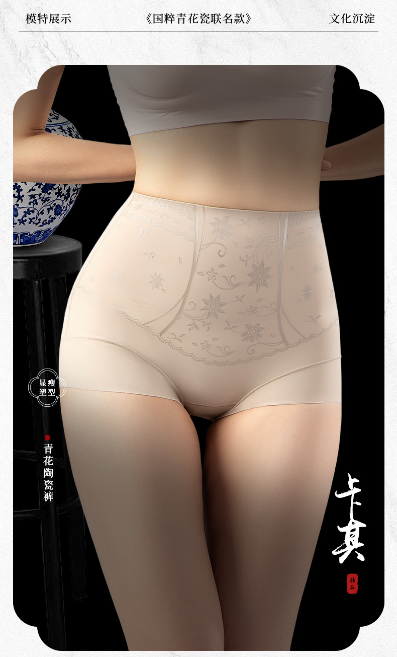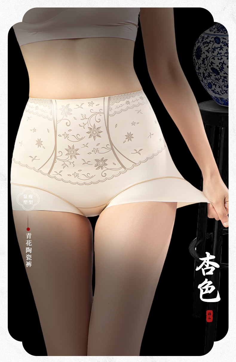 女性用の新しい中国風のハイウエストおなかコントロールパンツ、シームレスな弾性ウエストバンド、ヒップリフティング、通気性のあるボディシェイピング下着、女性用の薄いスタイル