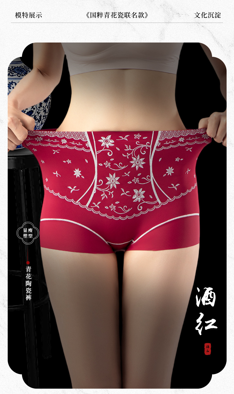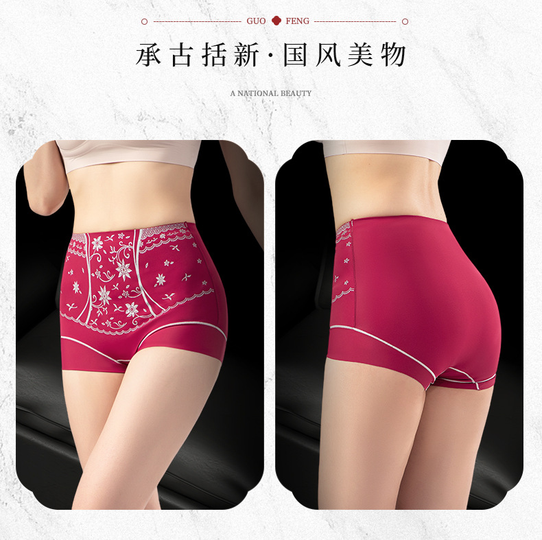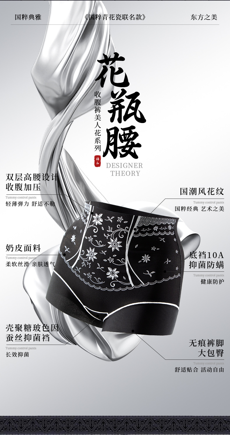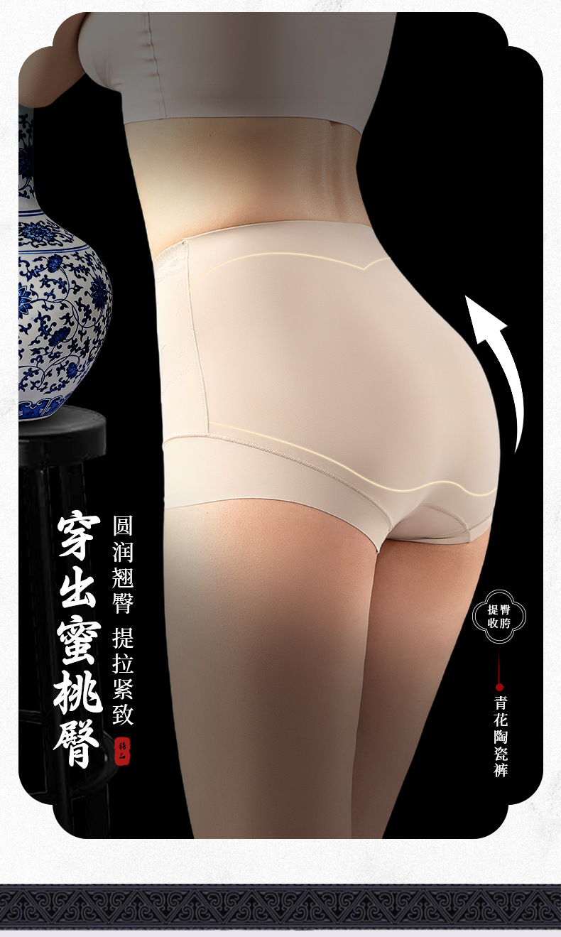 国风轻奢山茶花香氛冰肌裤无痕收腹提臀透气桑蚕丝抗菌裆内裤女