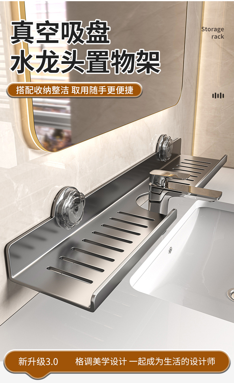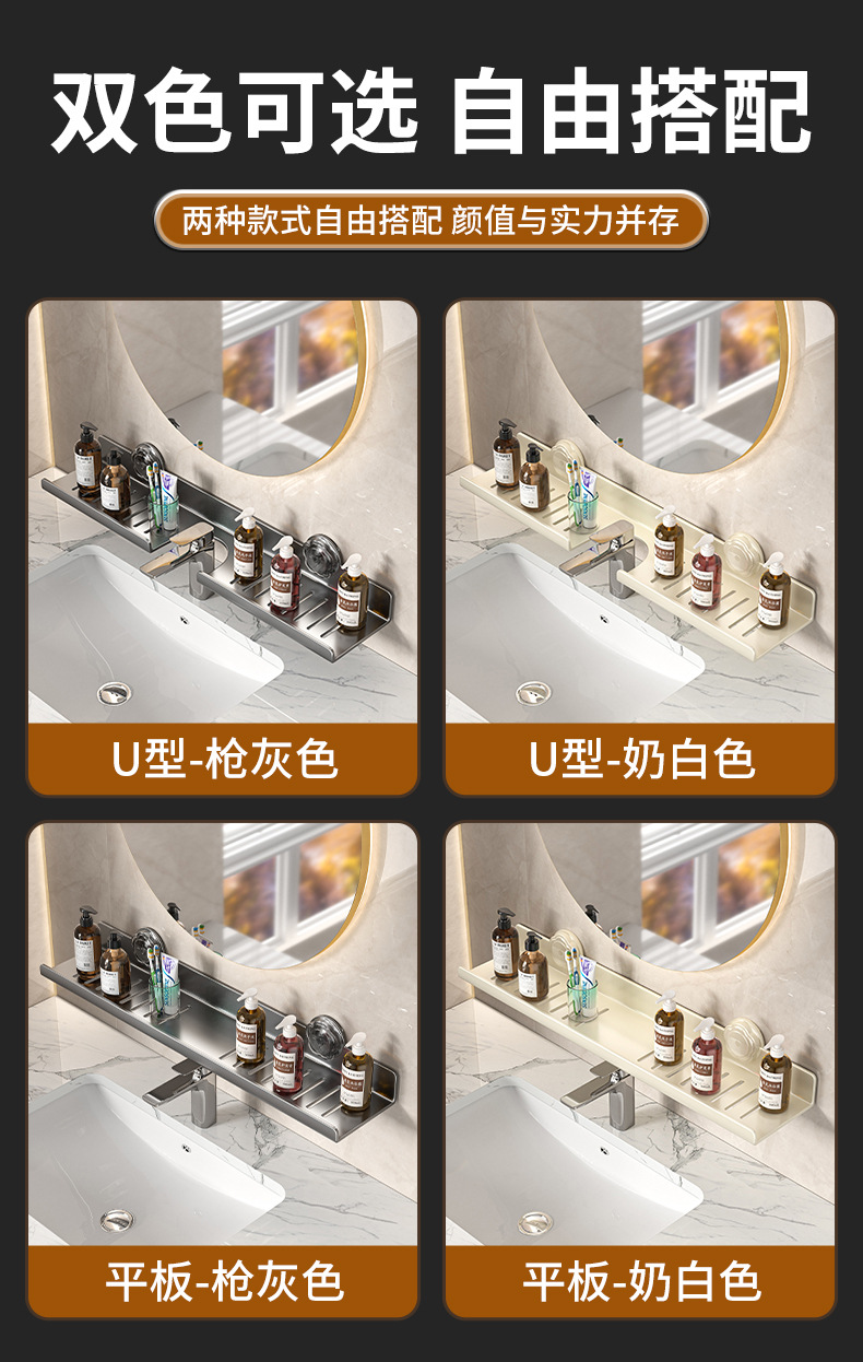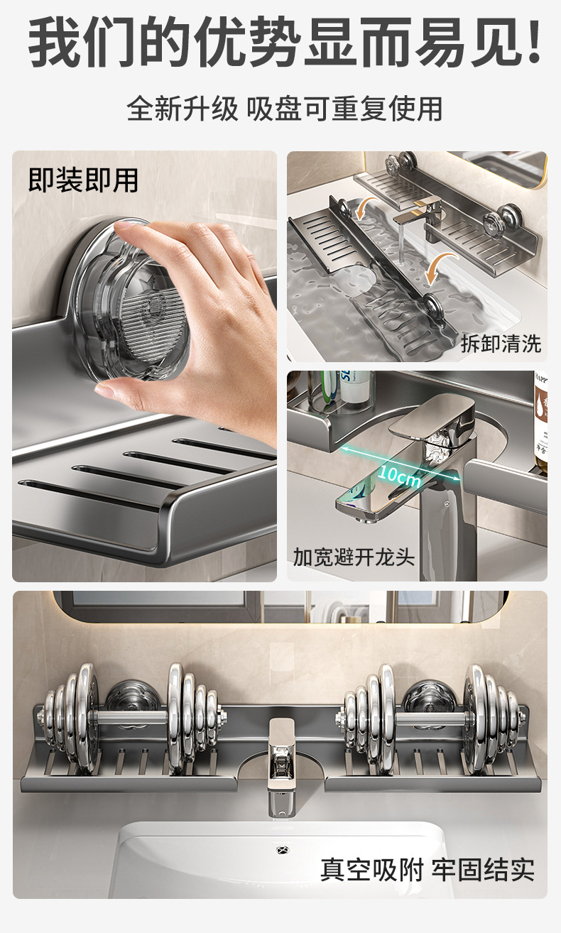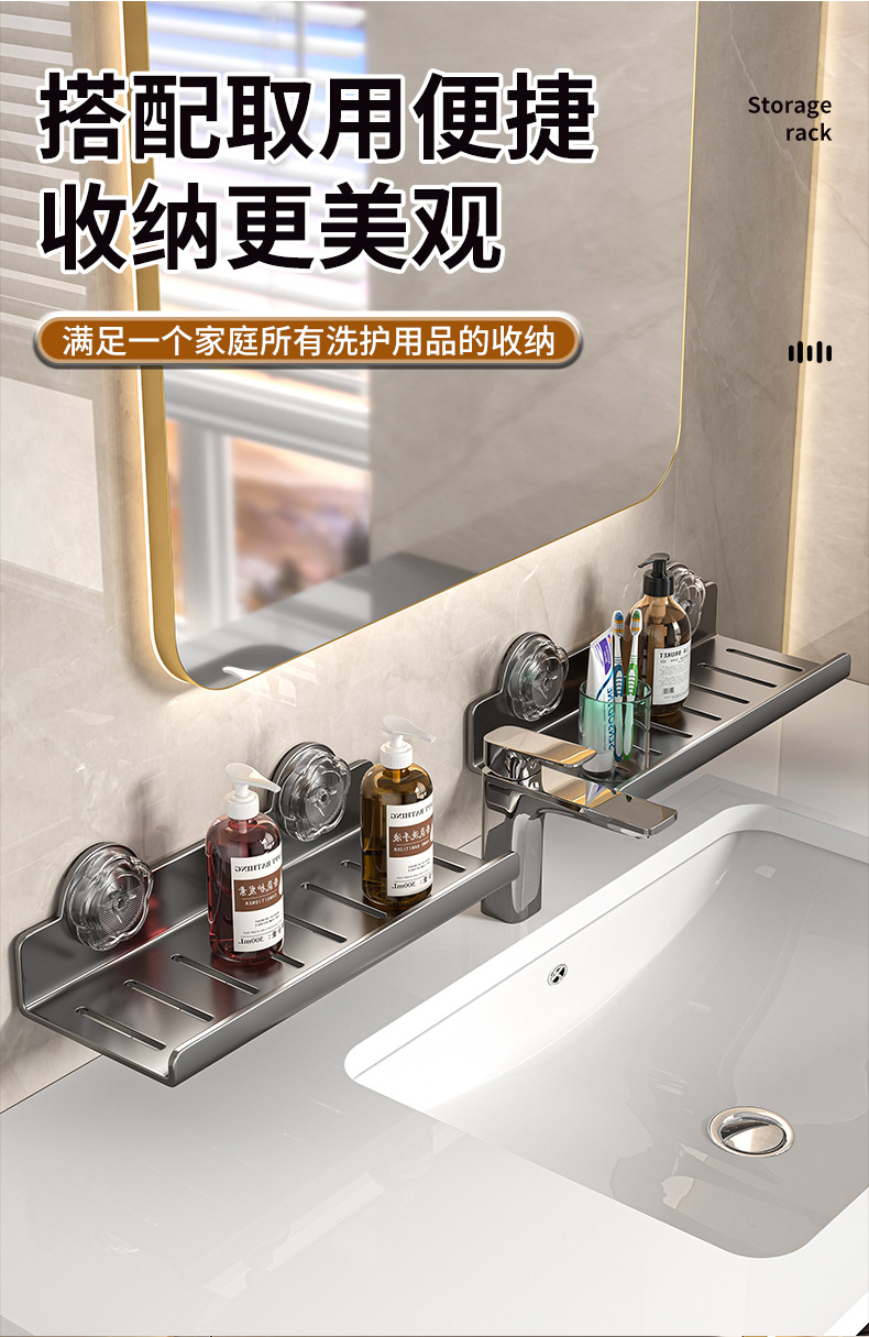 蛇口型パンチ吸盤収納壁掛けフロントバスルームミラーシンク収納ラック洗面台フリーシェルフ