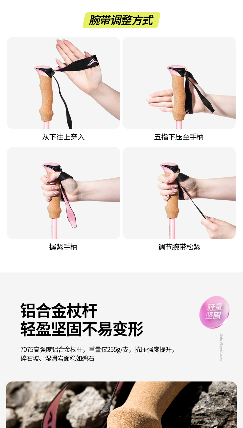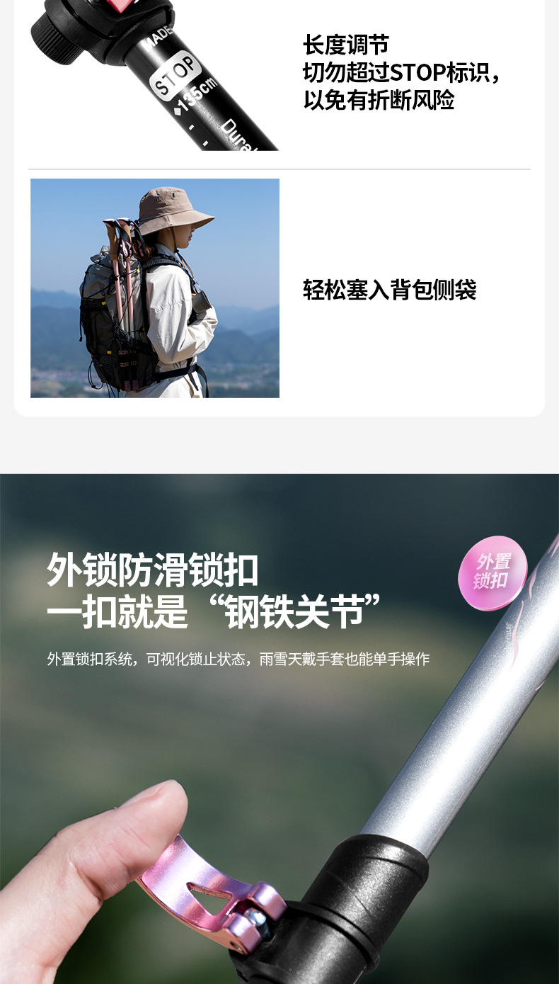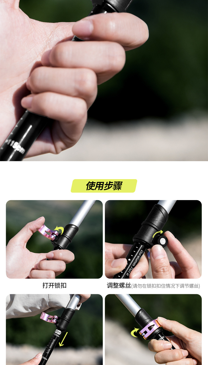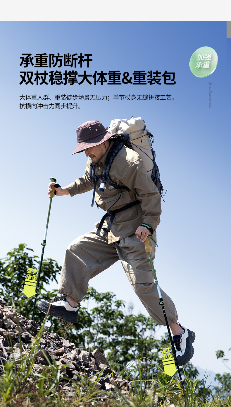 北山狼新型アウトドア超軽量アルミ合金外ロック登山杖伸縮可能徒歩登山杖男女杖