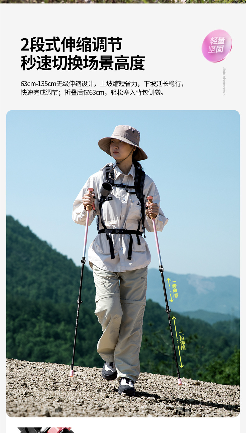 登山杖超軽量折り畳み杖徒歩登山屋外杖多機能無炭素多機能登山装備