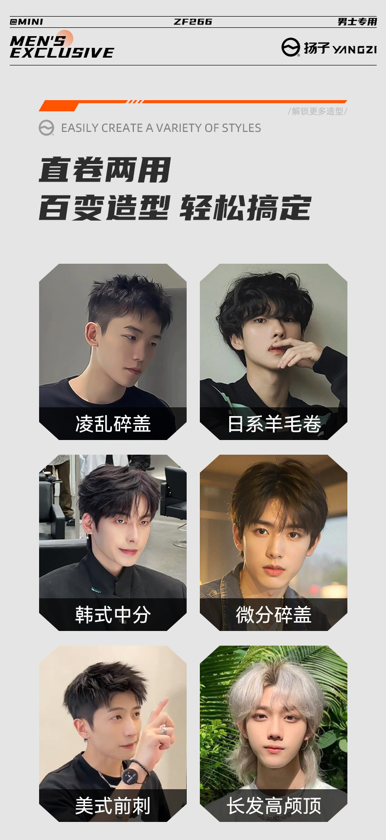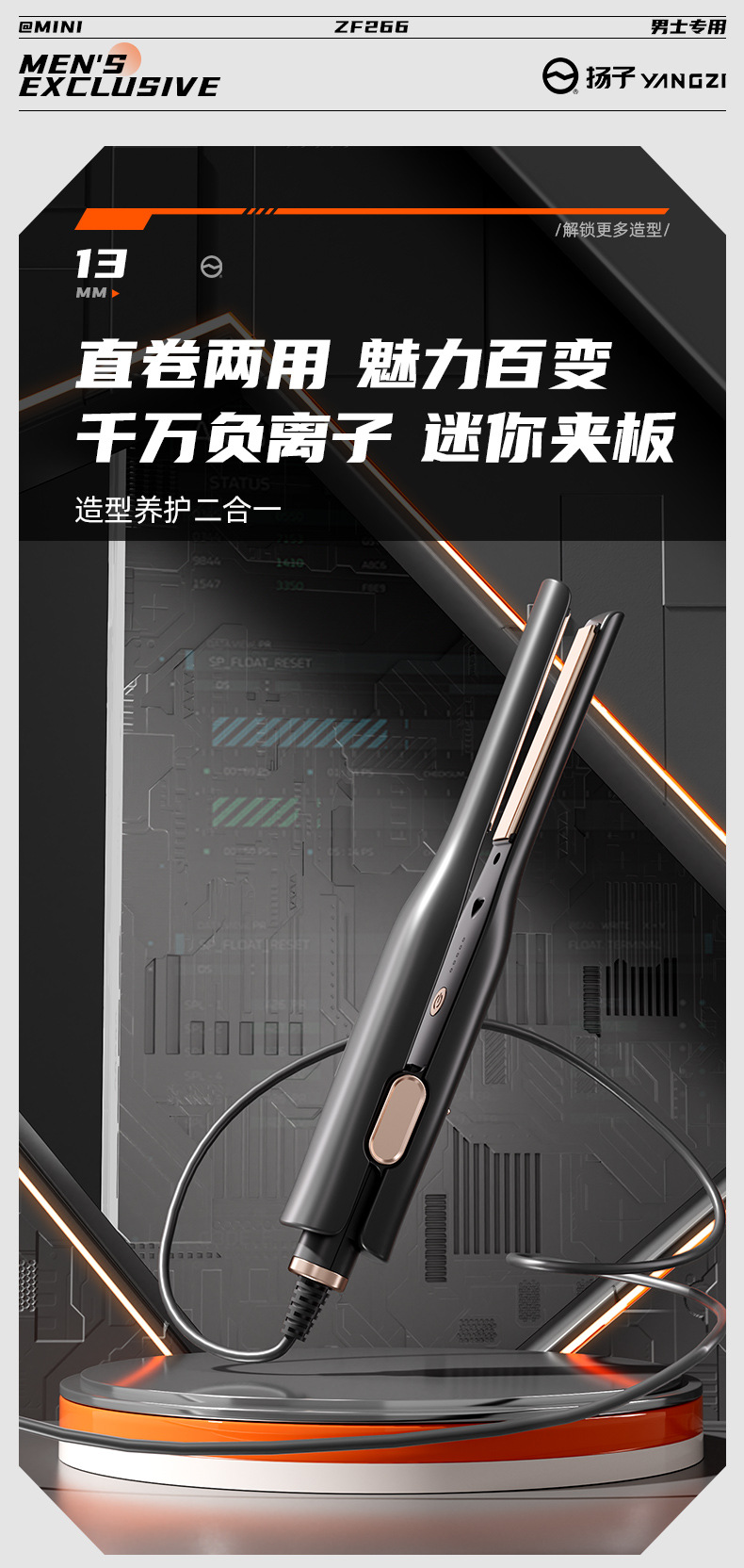男性用揚子ヘアアイロン、男の子用特殊スプリント、ストレート&カーリング両用ストレートスプリント、マイナスイオンパーマスプリント、ふわふわアーティファクト