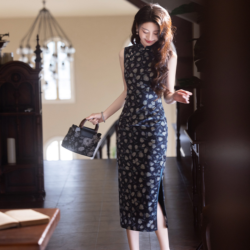 2025春夏新作チャイナドレス新中国風ノースリーブ少女チャイナドレス腰にお尻を包んで痩せた雰囲気の女性チャイナドレス