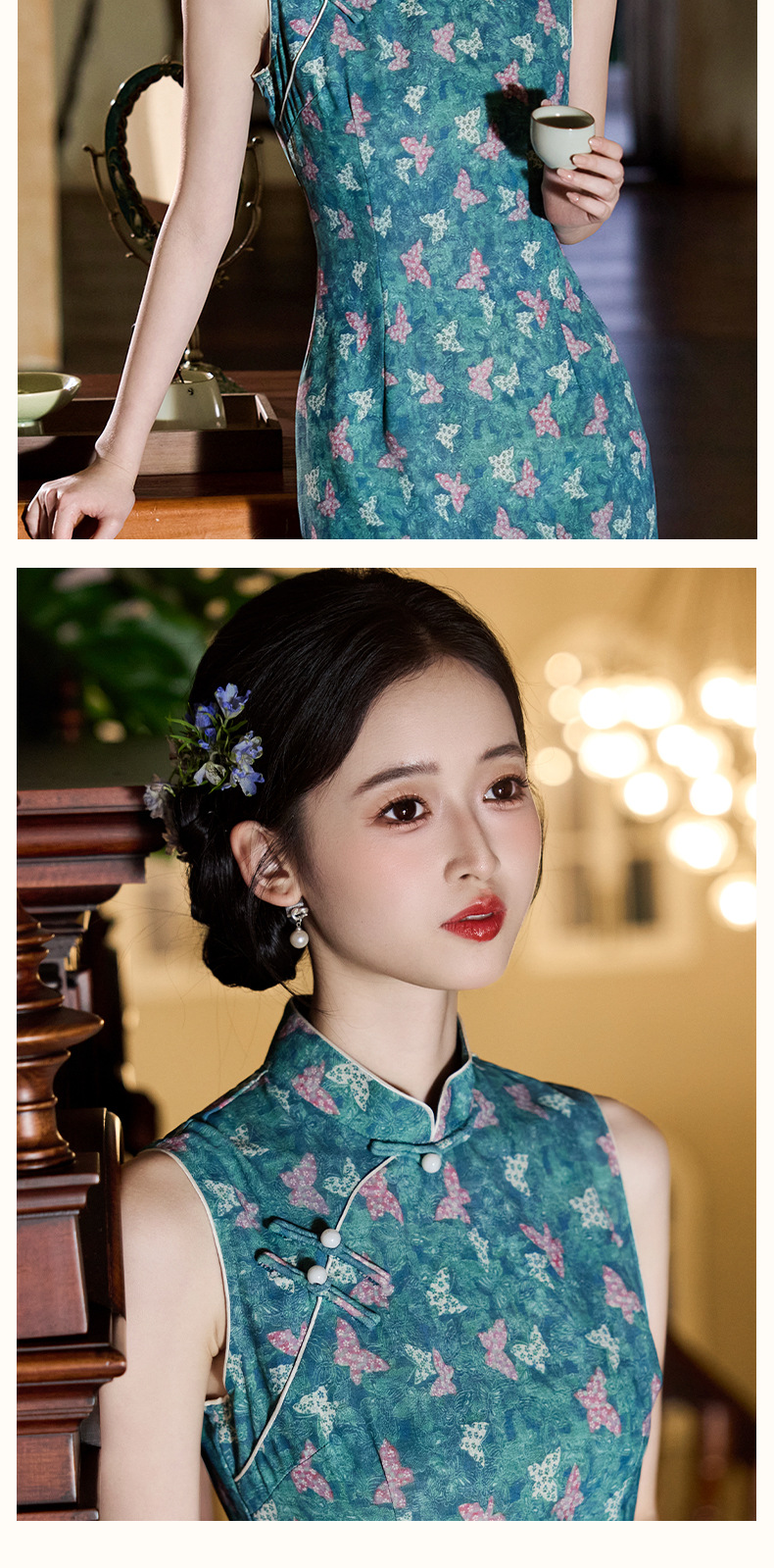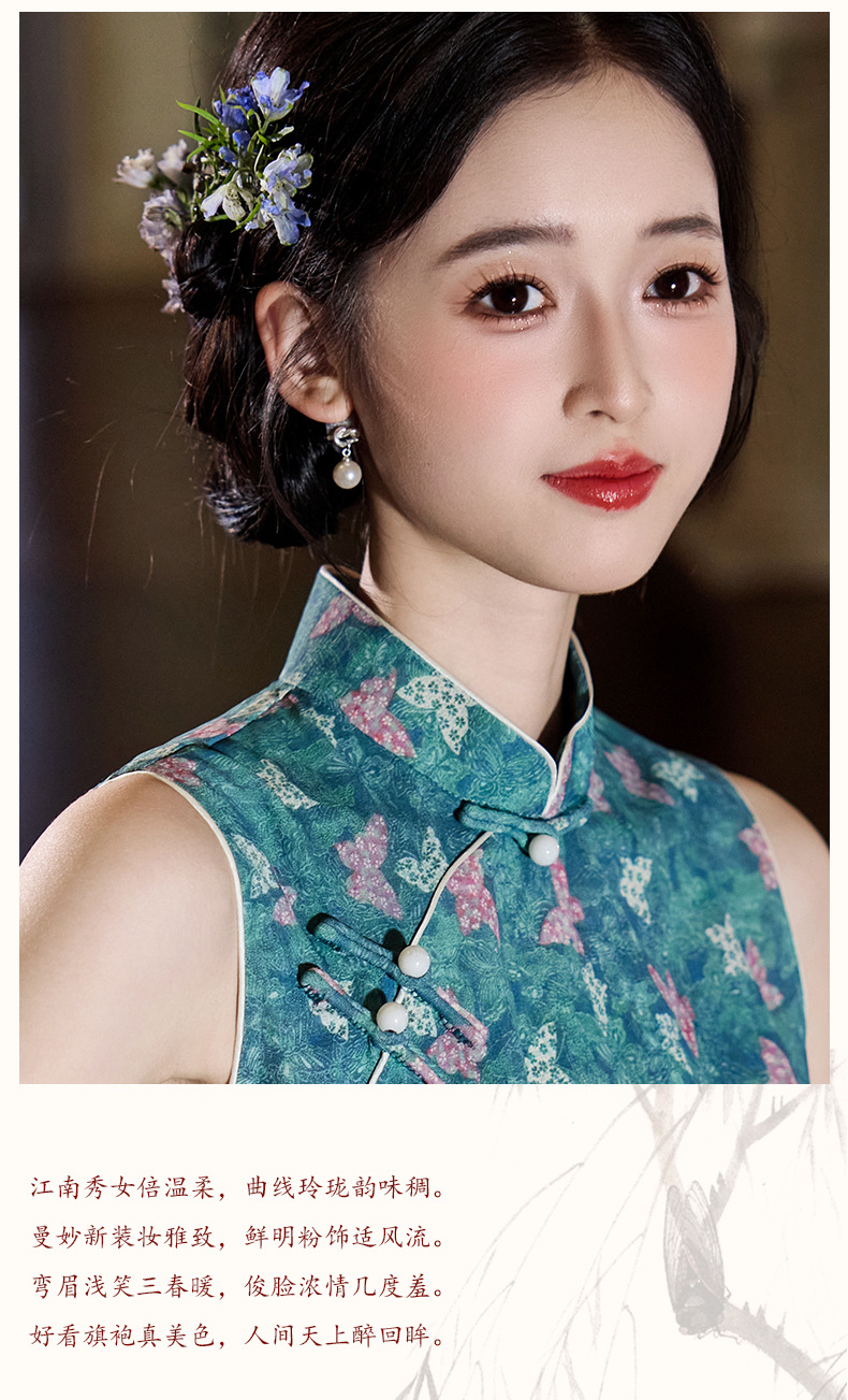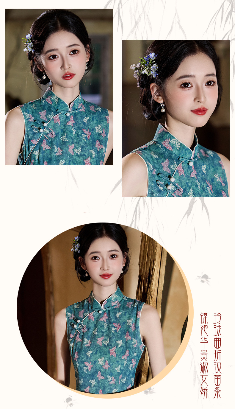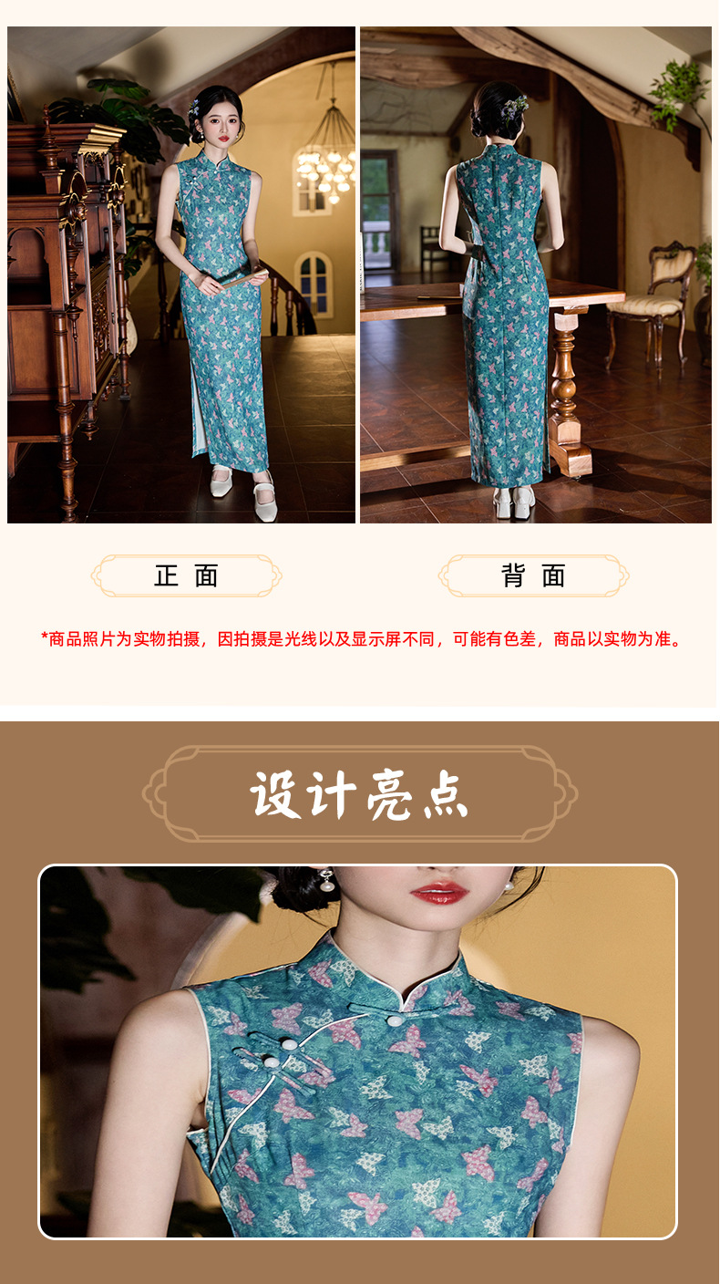 2025春夏新作チャイナドレス若手グリーンスリムノースリーブチャイナドレス新中国式高級気質優雅チャイナドレス