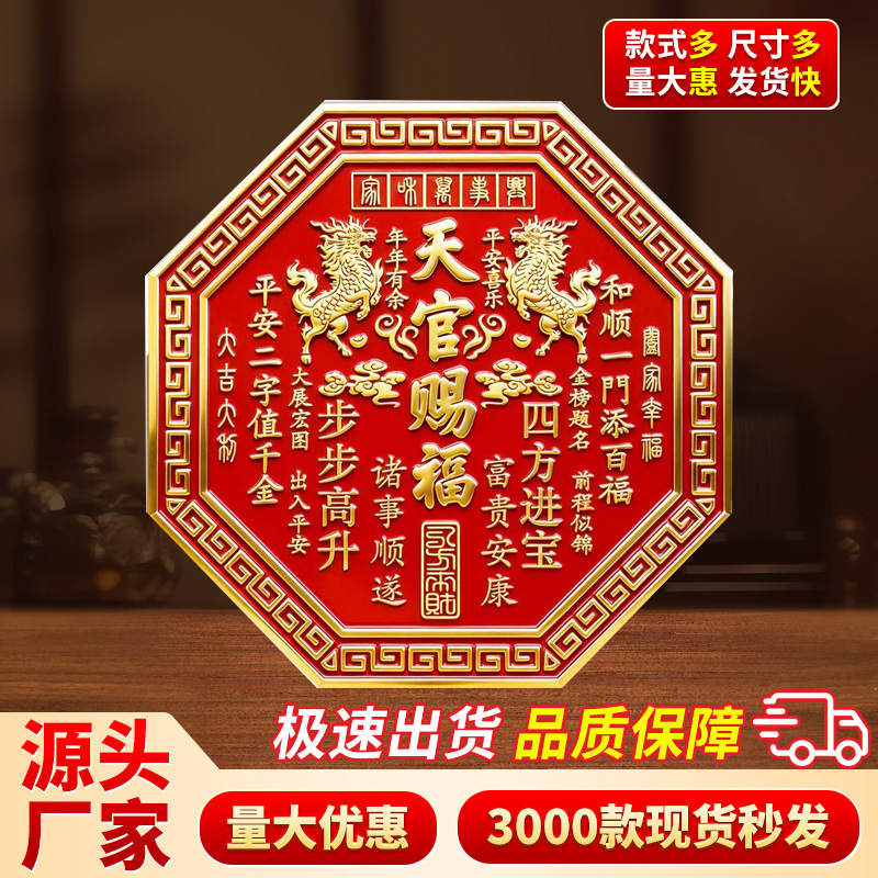 现货2026新款麒麟牌匾八边形门对门合金浮雕立体门贴画芯天官赐福