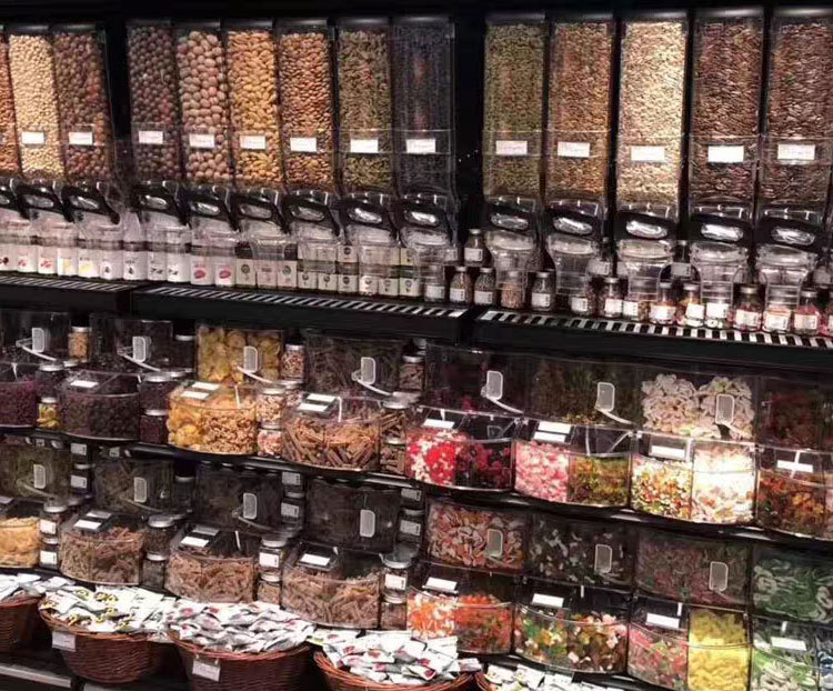 スーパーマーケットバルク食品ボックスキャンディードライフルーツボックス食品シールボックス透明ディスプレイボックススーパーマーケット食品展示ボックス