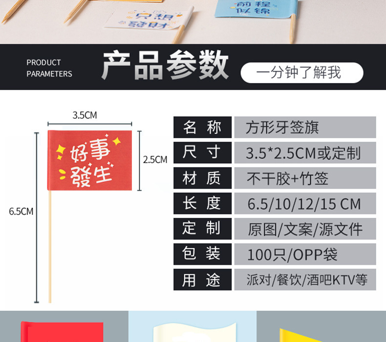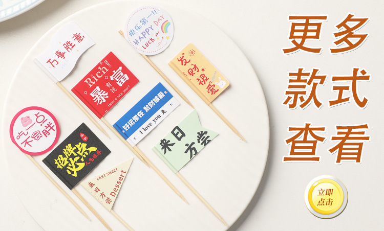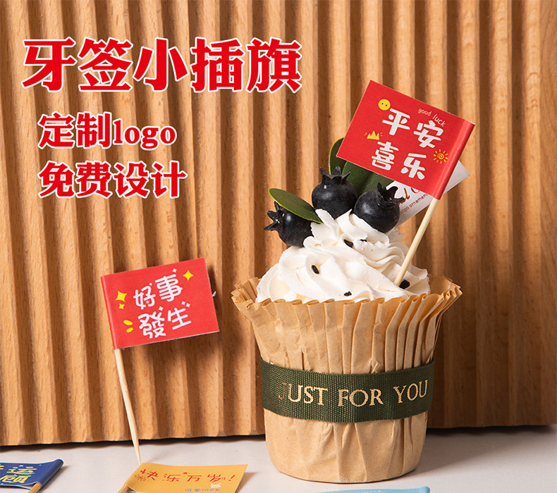 牙签旗网红甜品蛋糕一次性装饰小旗汉堡固定签子水果菜品旗帜