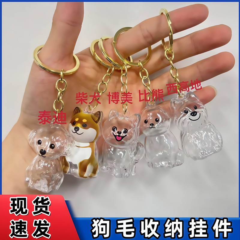 宠物毛发纪念胶囊情侣可爱小狗钥匙扣挂件狗毛猫毛纪念收纳盒批发