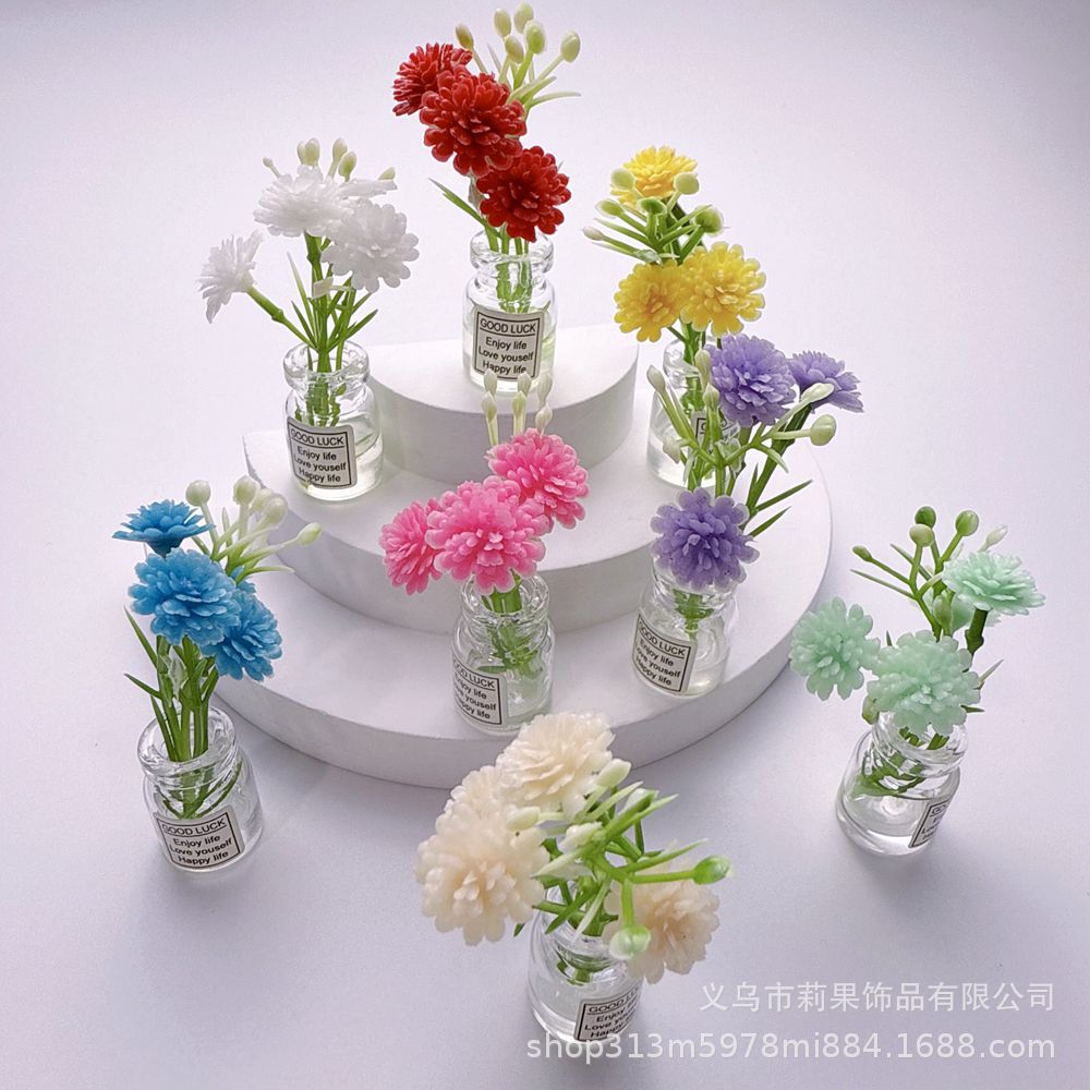 ネット赤立体夜光ガラス小花瓶創意diyデスクトップ小置物車載装飾品樹脂部品バッチ
