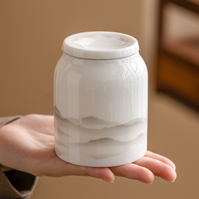 羊脂玉茶葉缶密封缶高級家庭用陶磁器携帯茶倉プーアル茶貯蔵缶小型