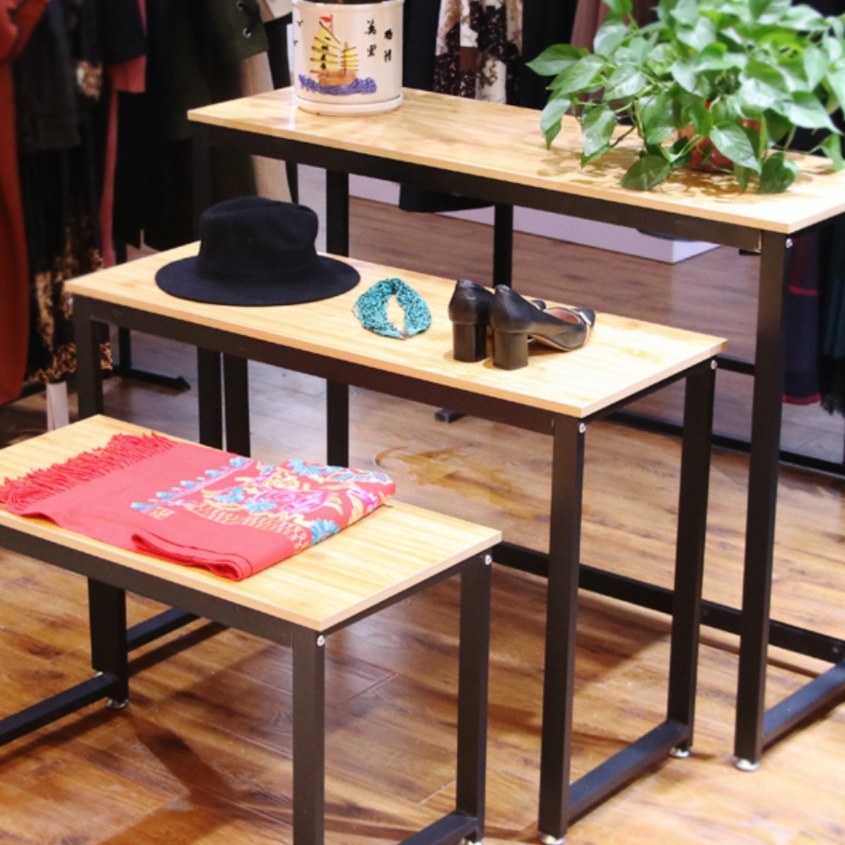 J^衣料品店流水テーブルライブブロードキャストディスプレイスタンド展示ハイ&ローテーブルフラワーショップバッグ靴ラックディスプレイテーブルアイランド