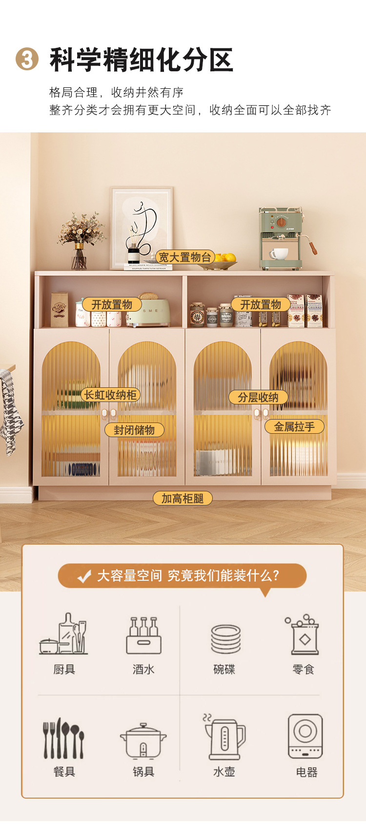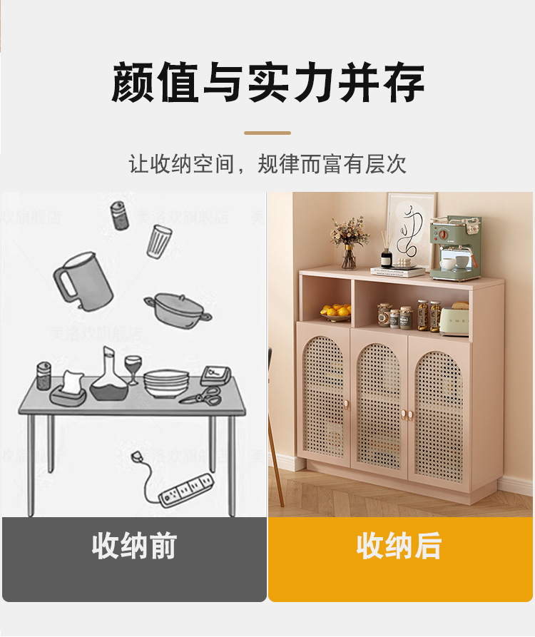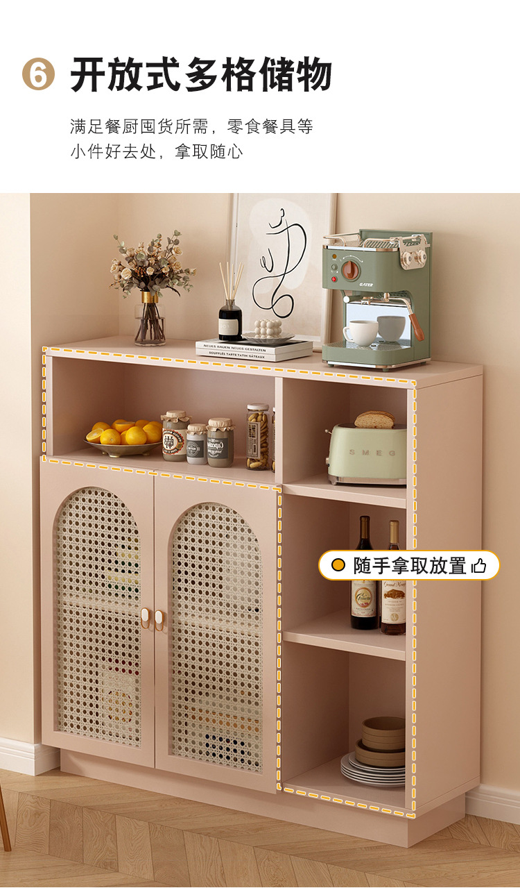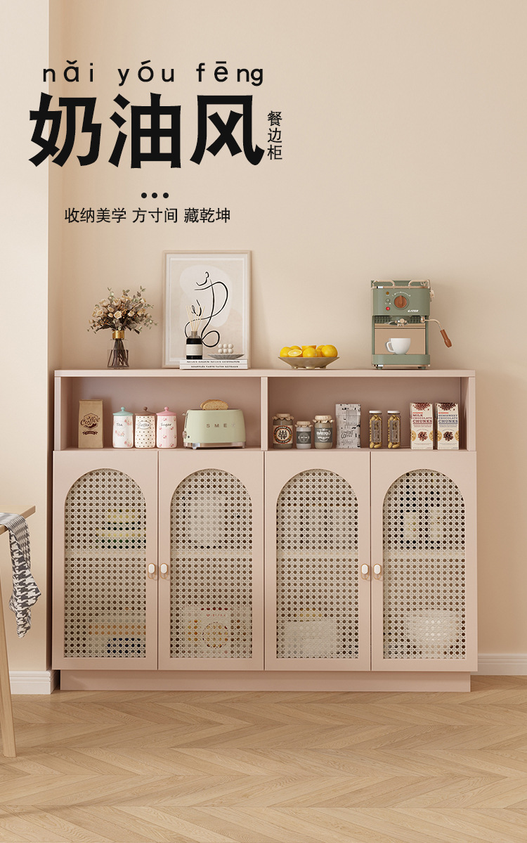 J^フレンチクリームスタイルサイドボードティーキャビネット籐壁収納キャビネットリビングルーム収納キャビネット防塵バケツキャビネット収納
