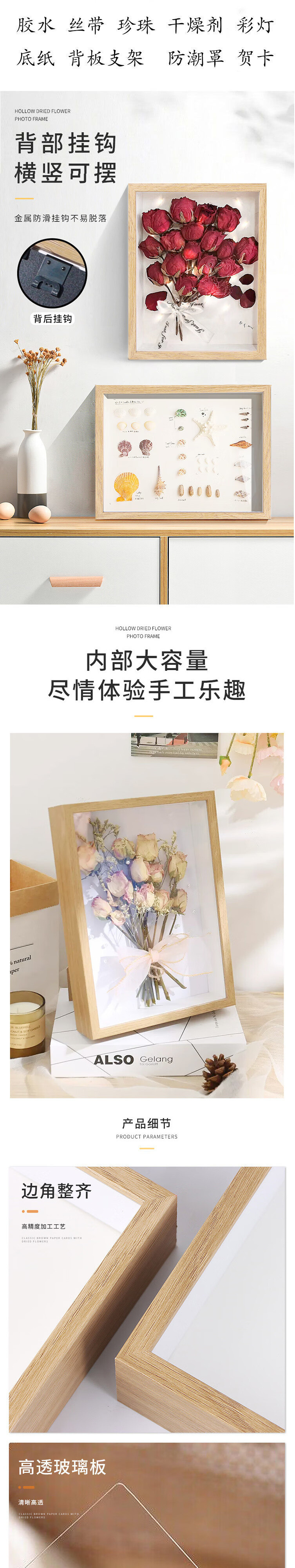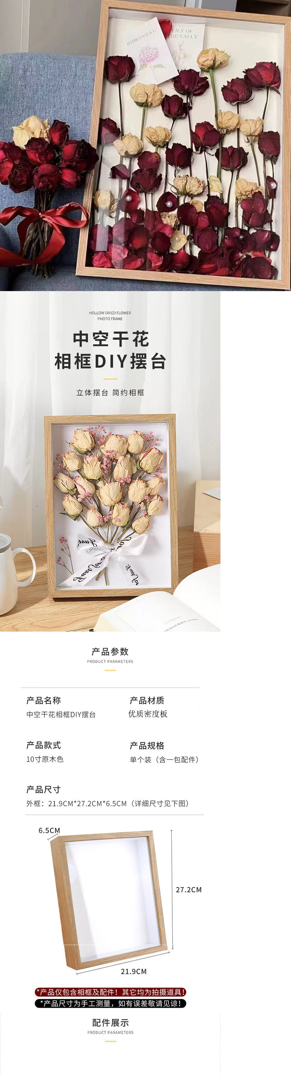 立体中空ドライフラワーフォトフレーム diy 手作りギフトフォトフレームテーブルドライローズ永遠の花クリエイティブ標本フレーム